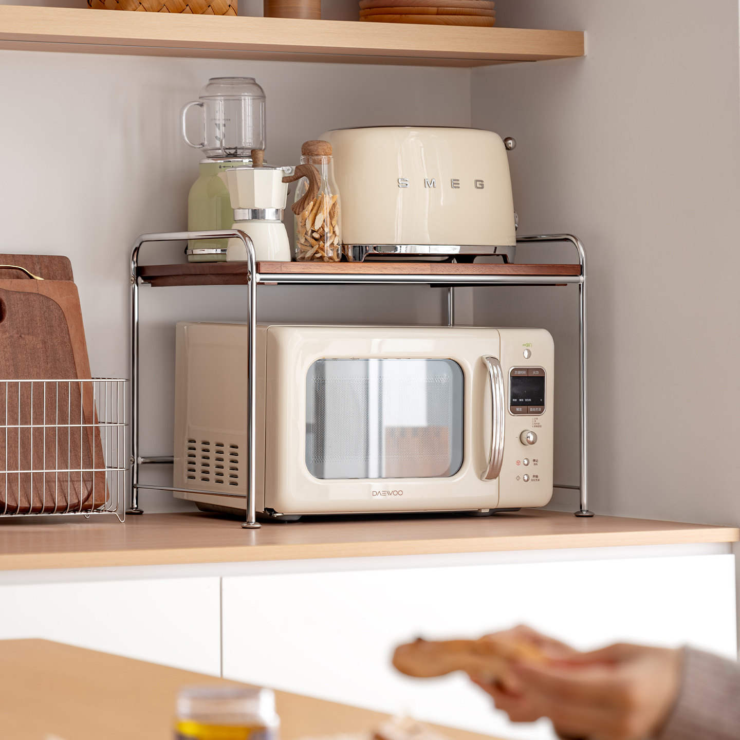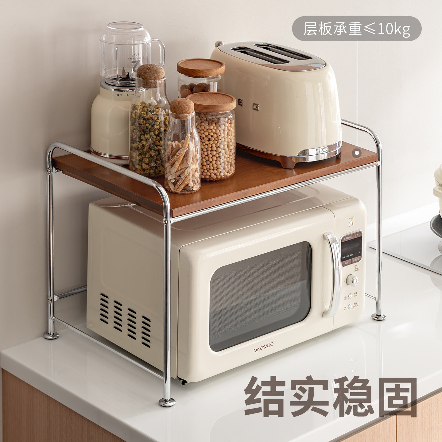 懒角落厨房微波炉置物架抽拉式单层台面上方托架子新型专用多功能