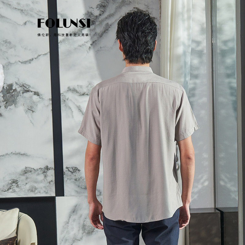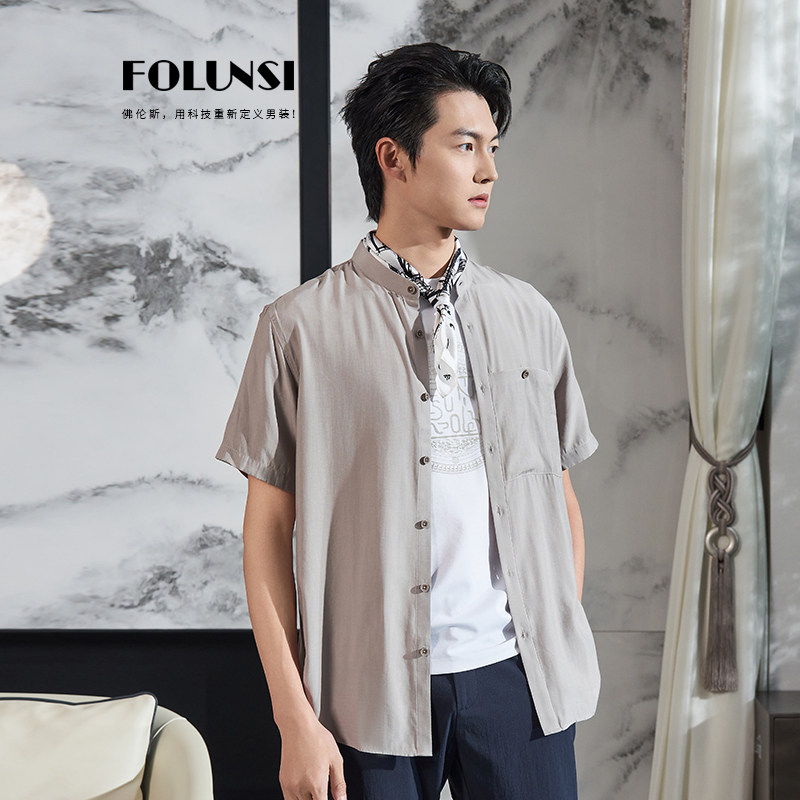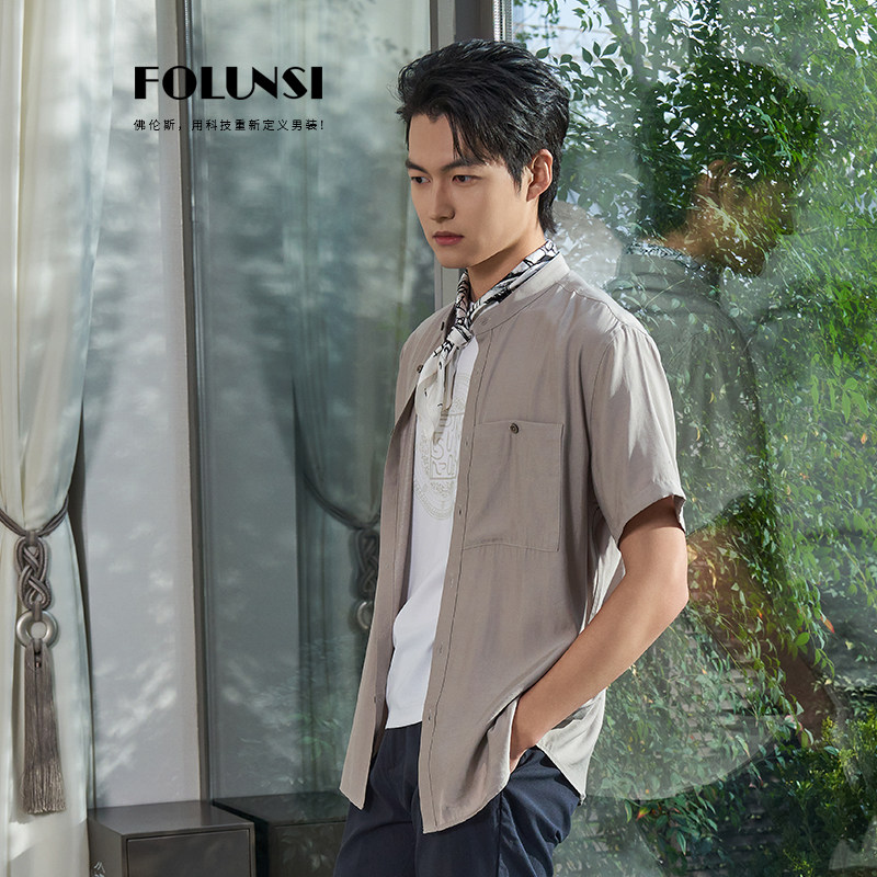佛伦斯folunsi新款男衬衣春秋款男士休闲立领时尚短袖衬衫男