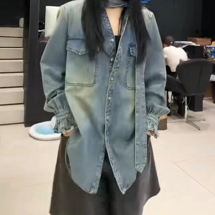 秋季新款复古水洗百搭宽松显瘦牛仔外套网红同款时尚休闲牛仔上衣