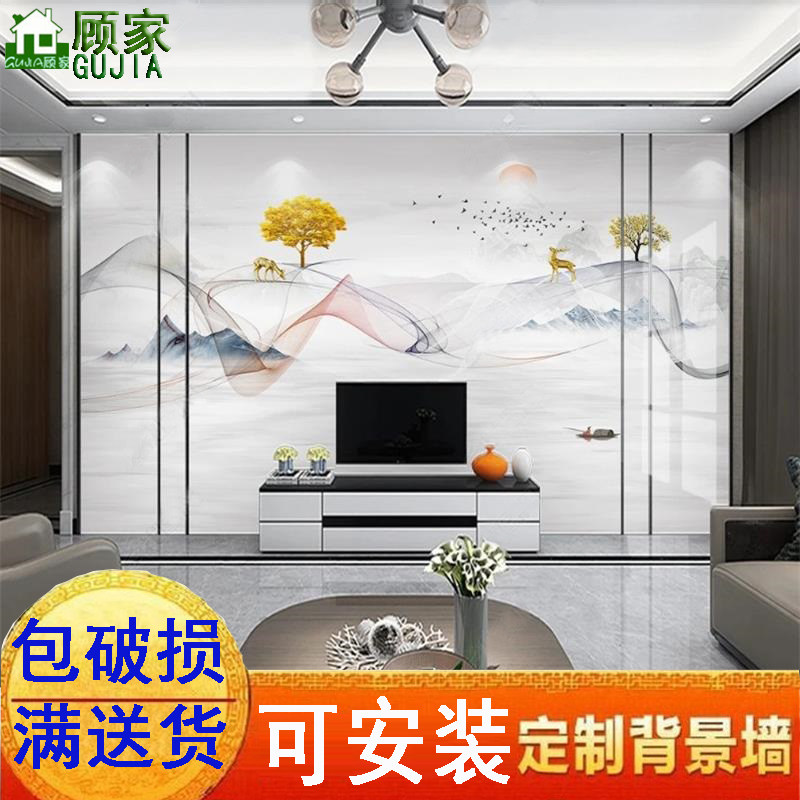 2023电视背景墙瓷砖现代简约大理石客厅轻奢木格栅岩板影视墙装饰