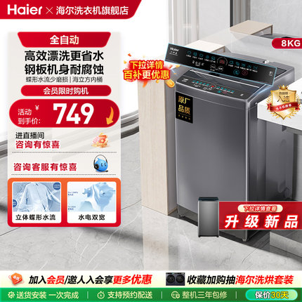 海尔官方旗舰波轮洗衣机8kg全自动家用大容量洗脱一体租房用Mate1