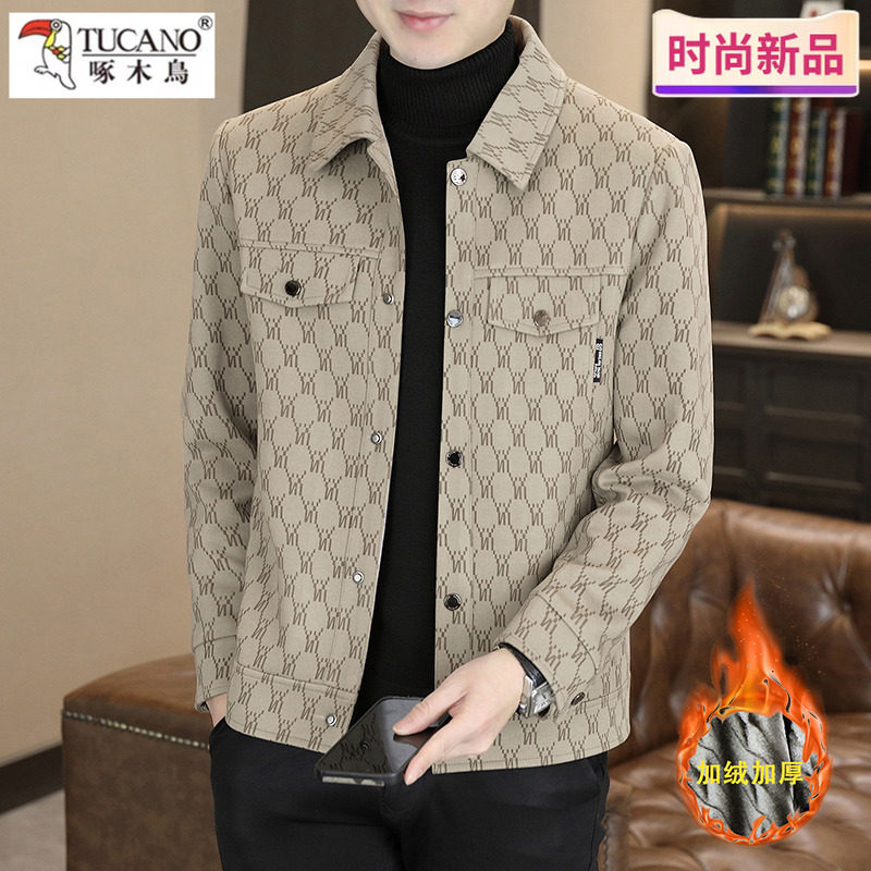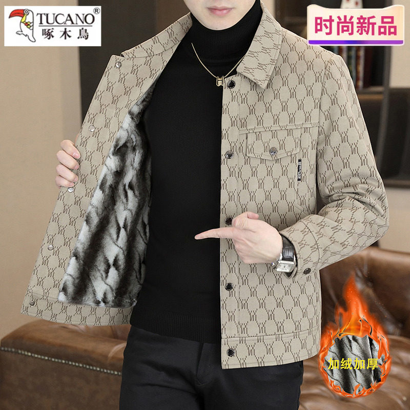 啄木鸟时尚休闲加绒加厚翻领夹克