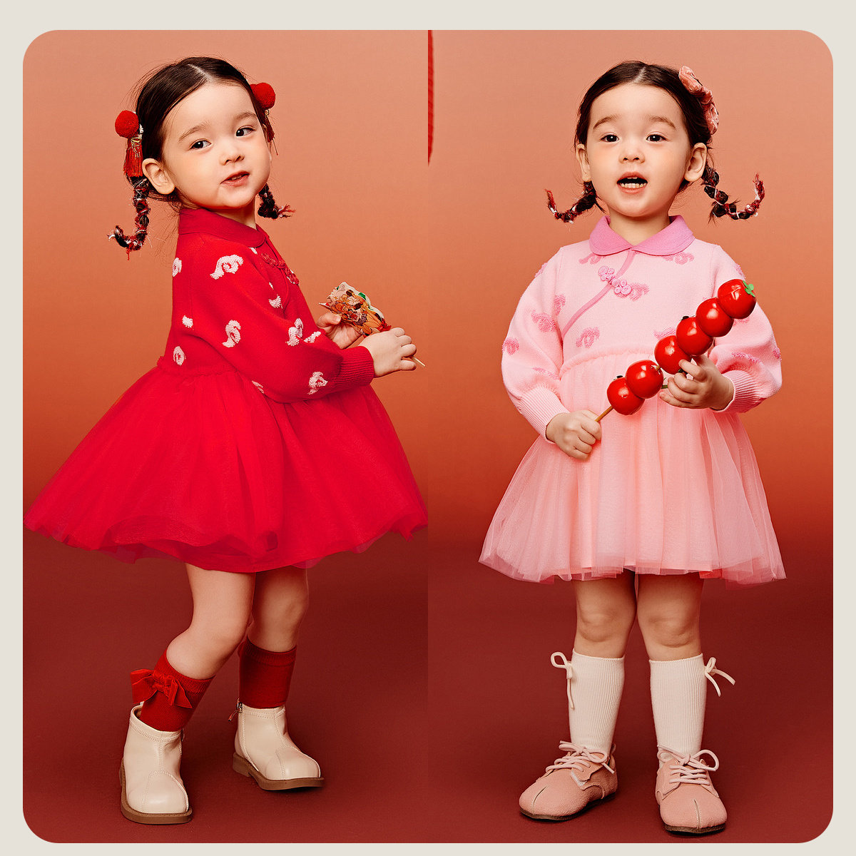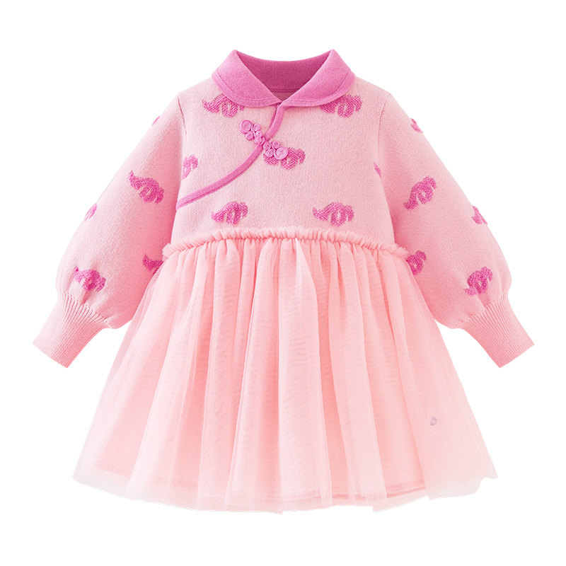 迷你巴拉巴拉女童新中式连衣裙秋冬新款2025儿童宝宝新年针织裙子