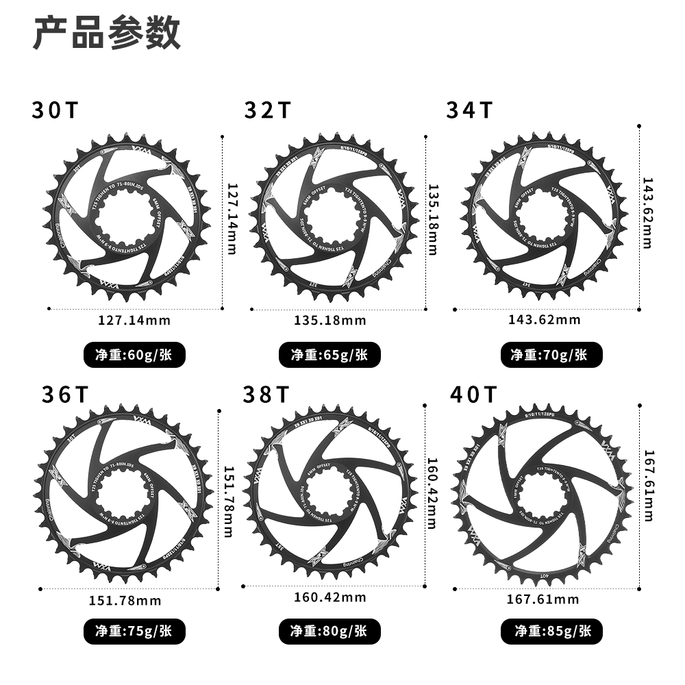 山地自行车单速正负齿牙盘 GXP直装式一体单盘30T32T34T36T38T40T