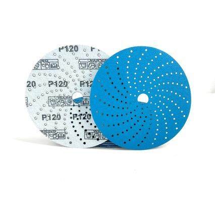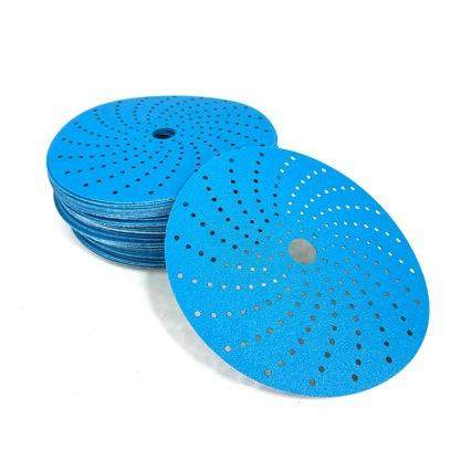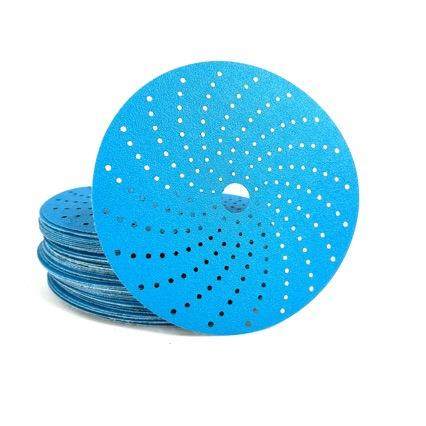 FC66盒装薄膜蓝砂汽车干磨砂纸旋风孔6寸打磨片蓝色陶瓷砂纸