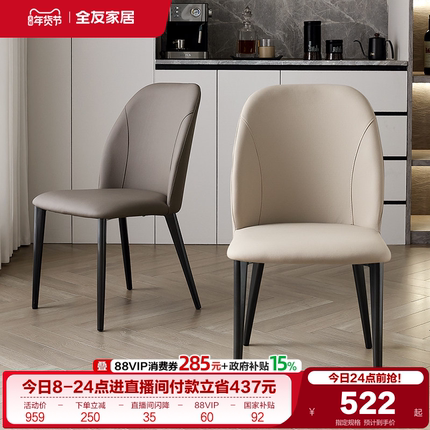 全友家居客厅轻奢高级感吃饭餐椅卧室家用休闲办公带靠背软包椅子