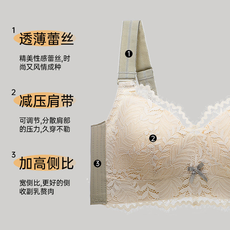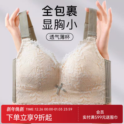 润微茶肌抑菌大胸显小内衣女薄款调整型防下垂收副乳全罩杯文胸罩