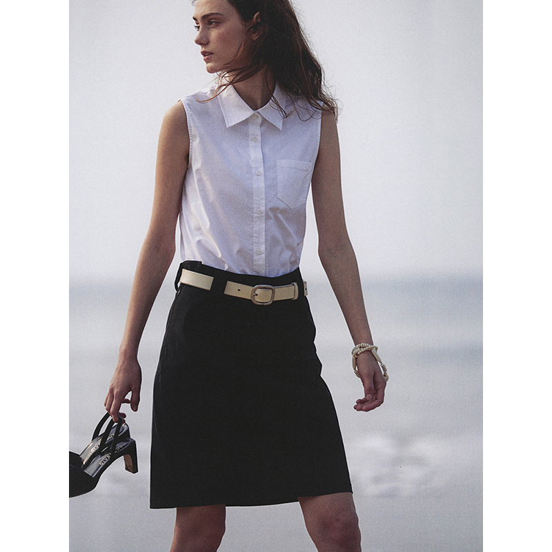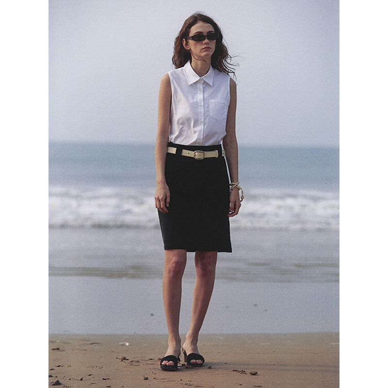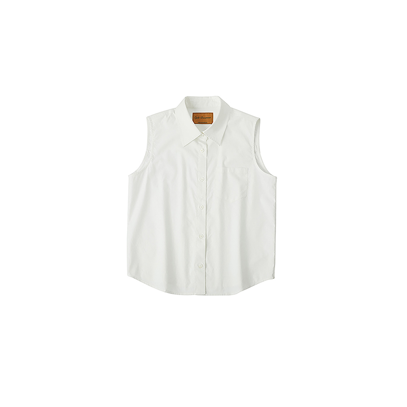 Cycle Document天丝棉白色无袖背心衬衫女通勤简约设计感显瘦上衣