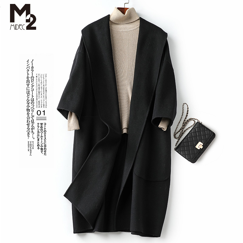 M2女装2024年秋冬新款双面呢毛呢大衣女中长款大码羊毛妈妈外套冬