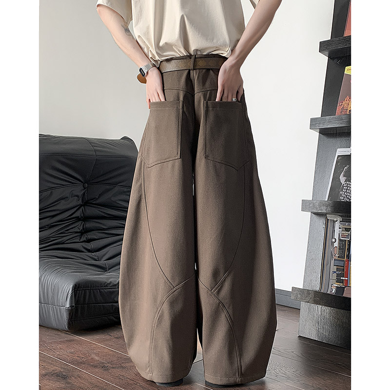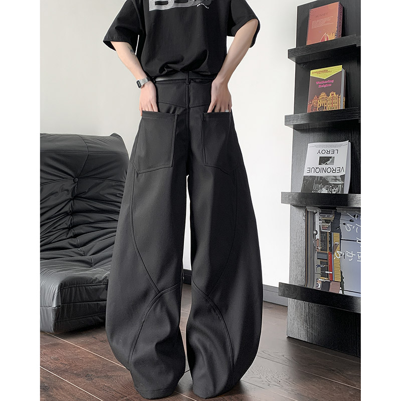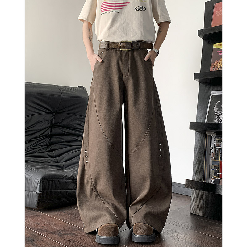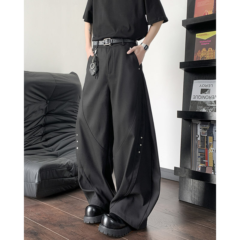 重磅铆钉拼接弯刀西裤男款cleanfit垂坠感宽松阔腿休闲西装裤直筒