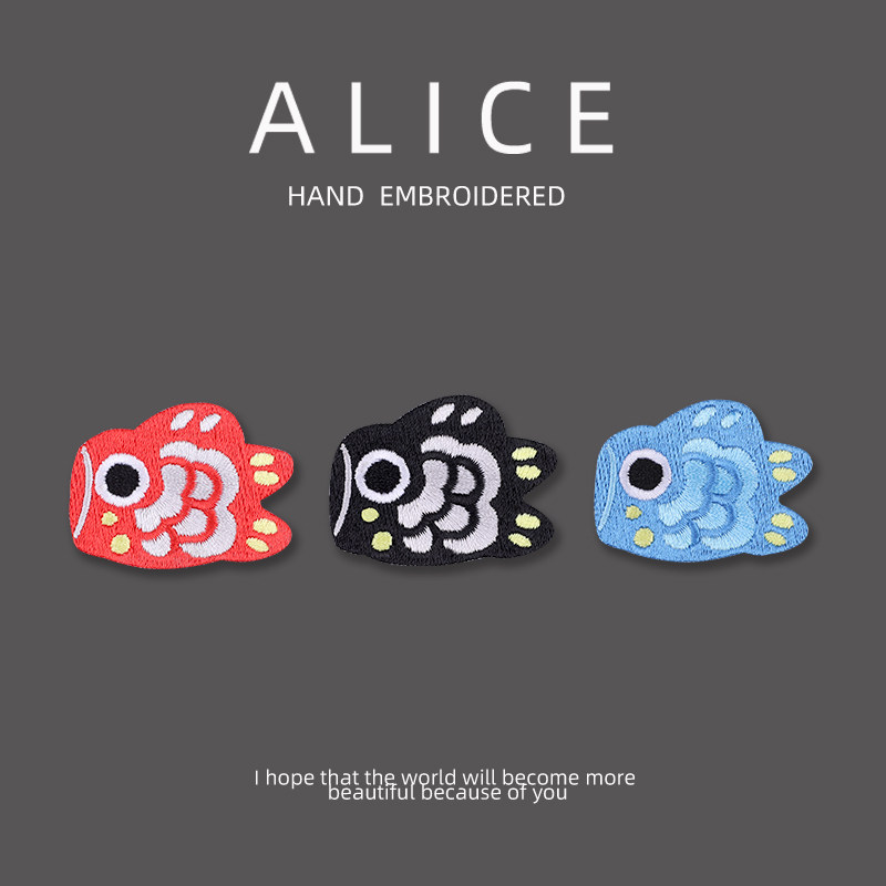 日系红色锦鲤刺绣补丁贴布可爱情侣衣服时尚羽绒服修补破洞装饰贴