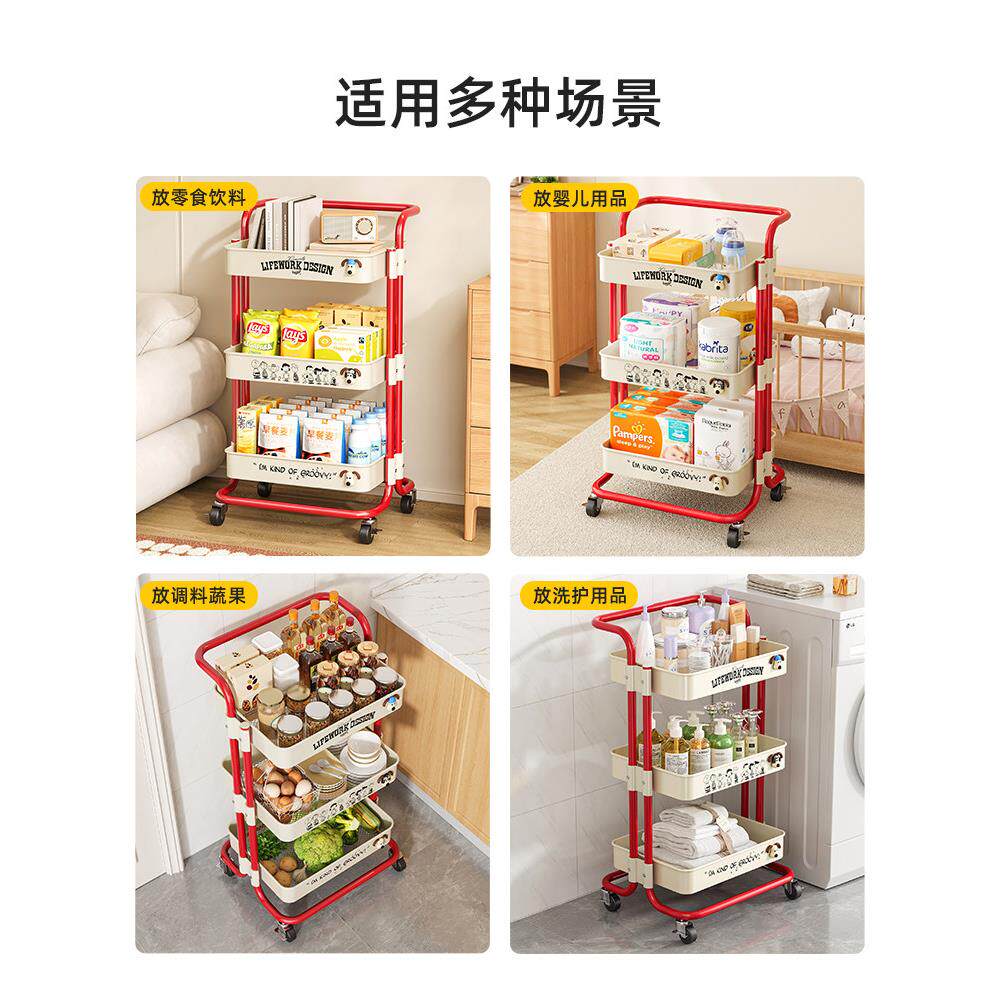 网红小推车史努比DIY拼色置物架落地浴室移动多层客厅零食收纳架