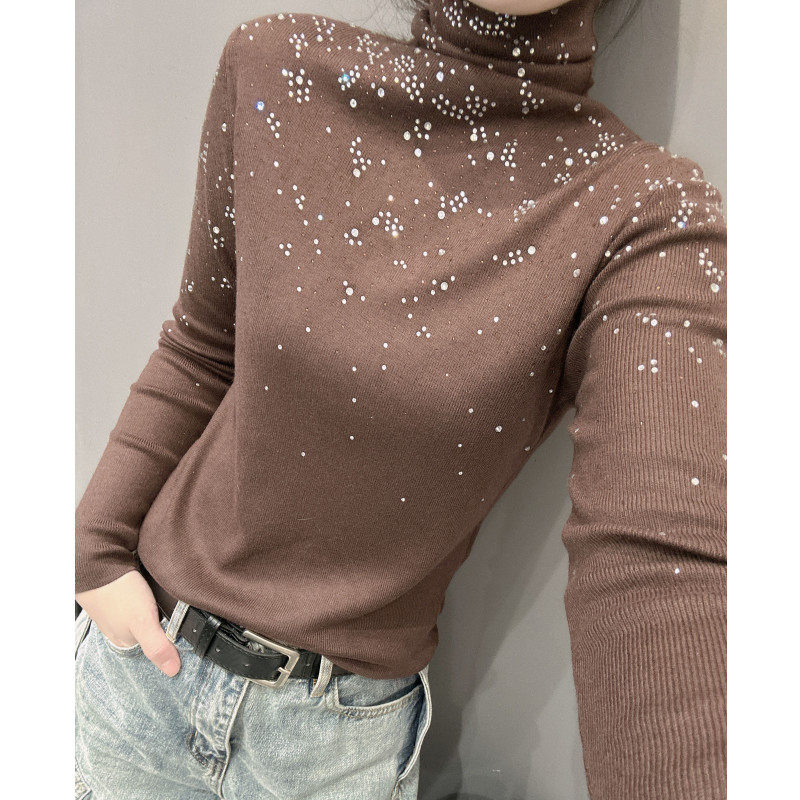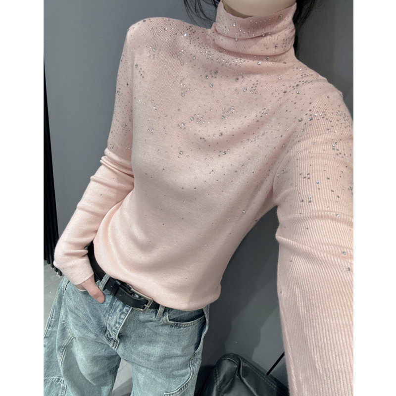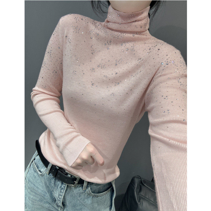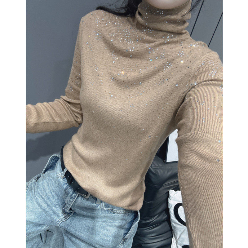 秋冬款显瘦修身毛衣打底衫长袖女时尚洋气烫钻内搭高领针织衫上衣