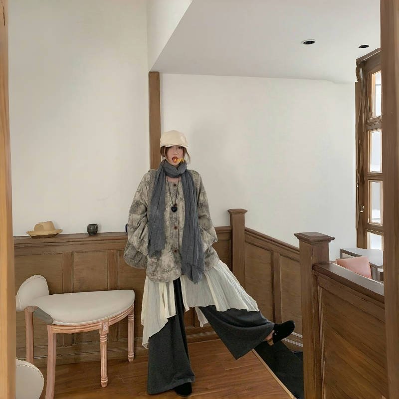 大码女装秋季2025新款胖MM复古宽松外套+褶皱衬衫+阔腿休闲裤套装