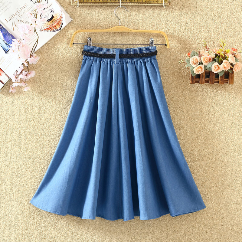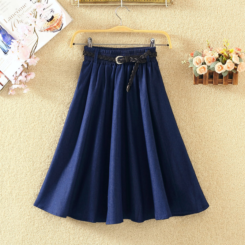 夏季韩版学院风高腰显瘦百搭纯色文艺a字裙女中长款牛仔裙半身裙
