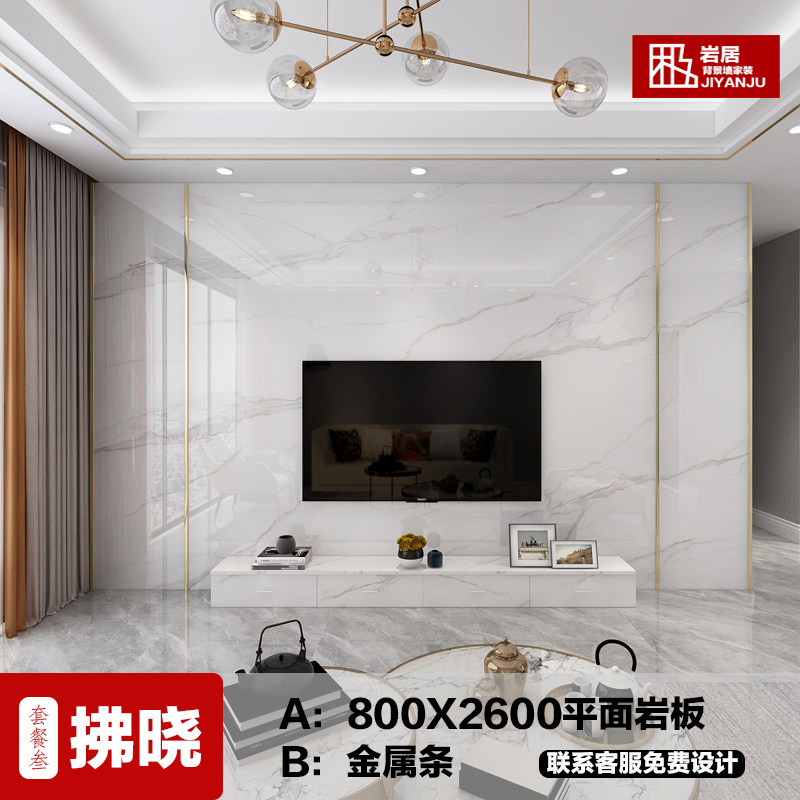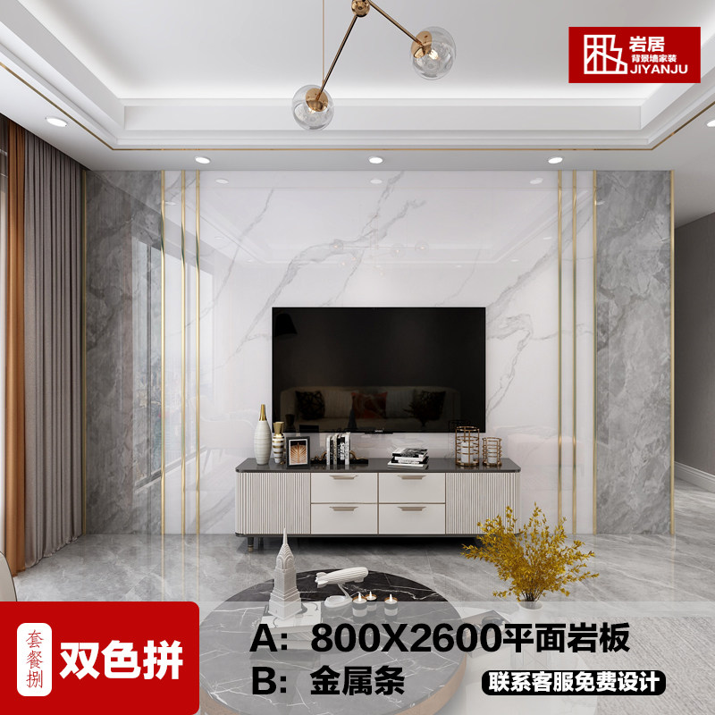 定制岩板大板电视背景墙现代简约C轻奢客厅大理石瓷砖电视墙影视