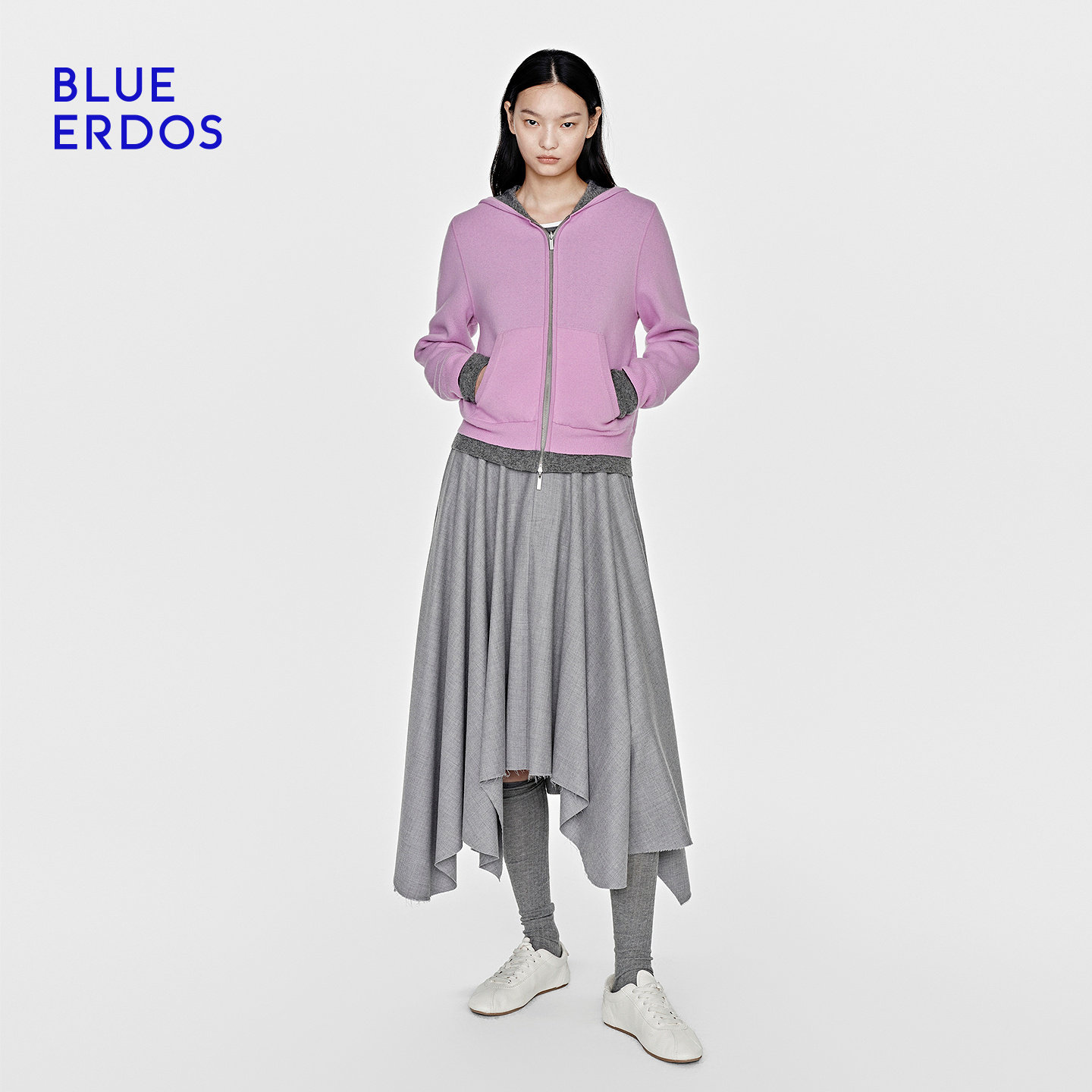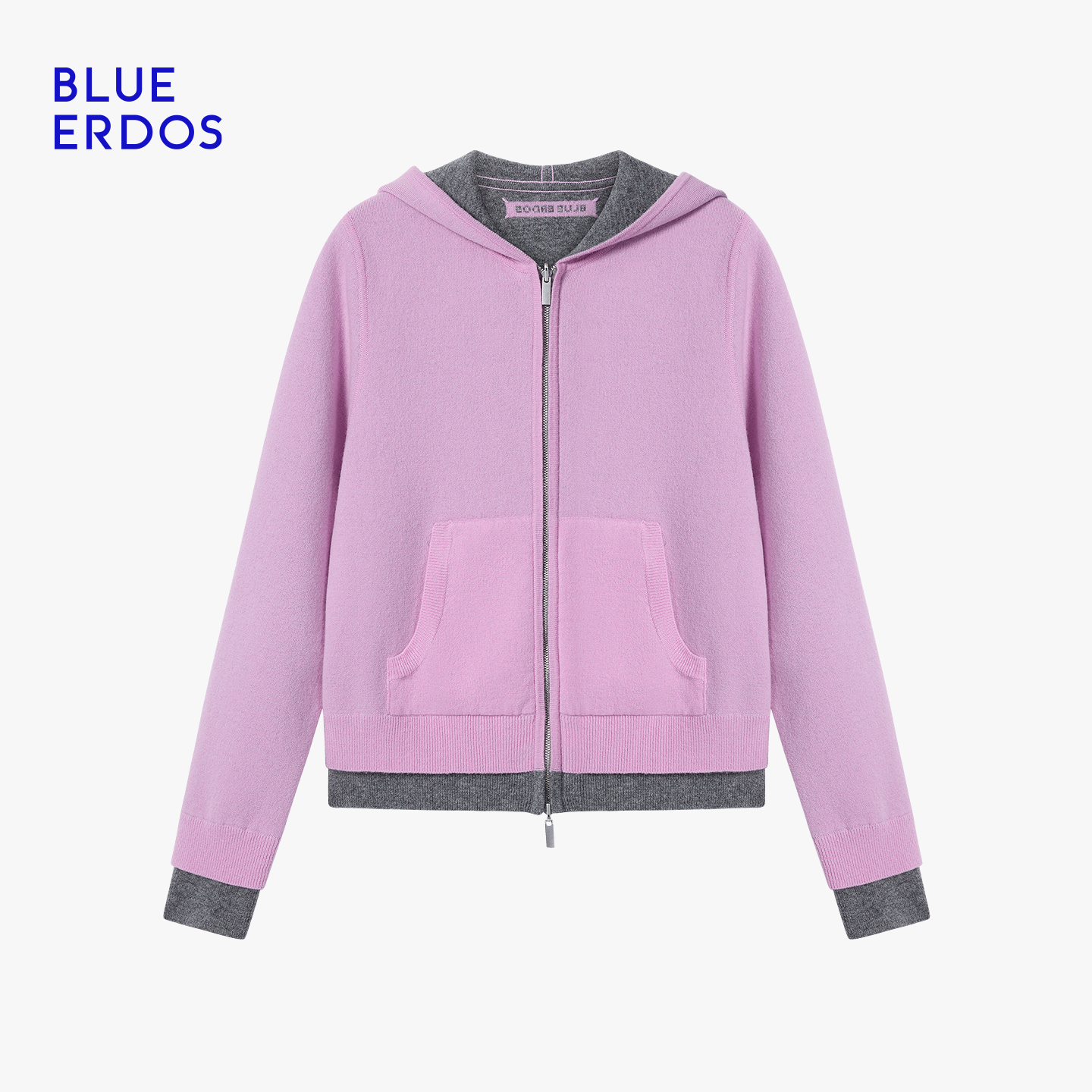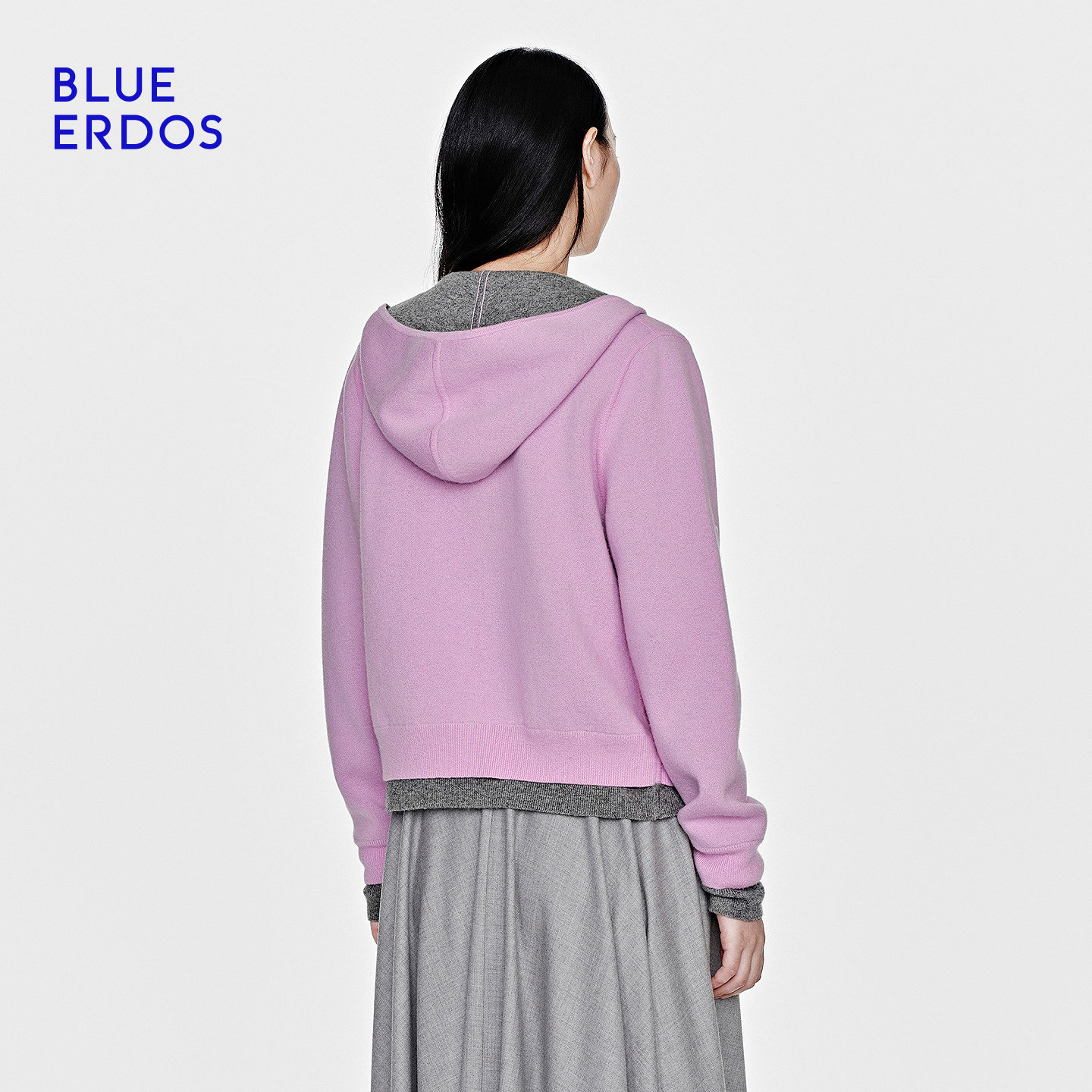 BLUE ERDOS26早春新品通勤百搭羊毛羊绒混纺双面穿拉链连帽开衫女