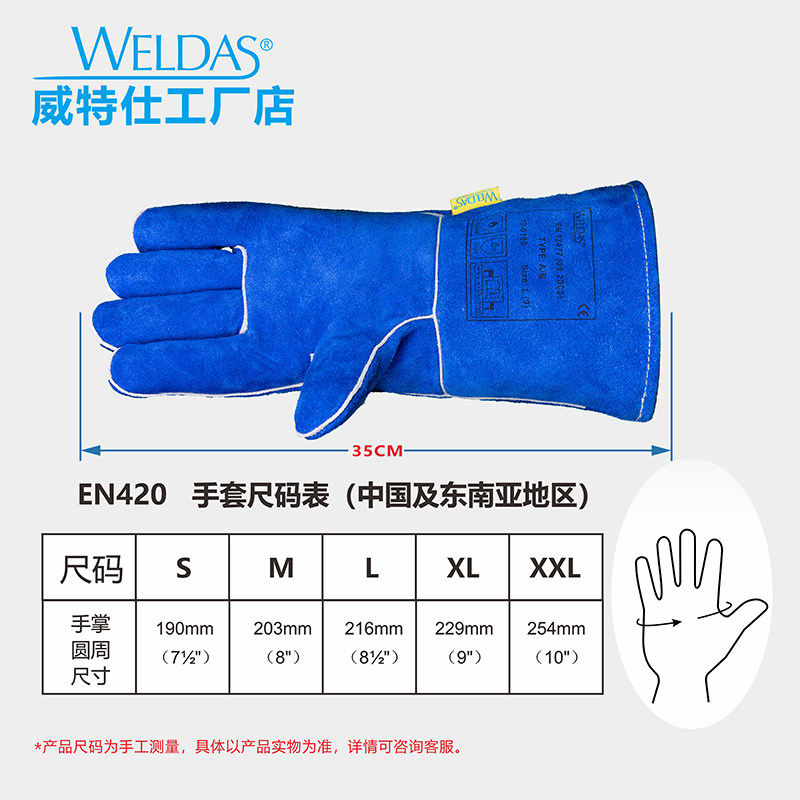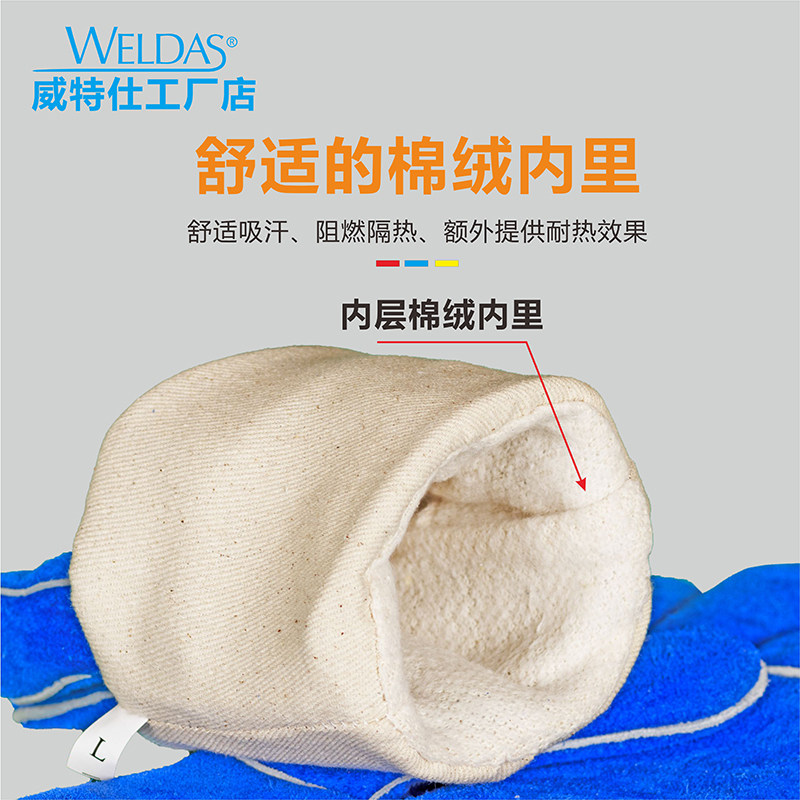 威特仕10-0160焊工手套电焊手套耐磨蓝色舒适防烫隔热牛皮手套