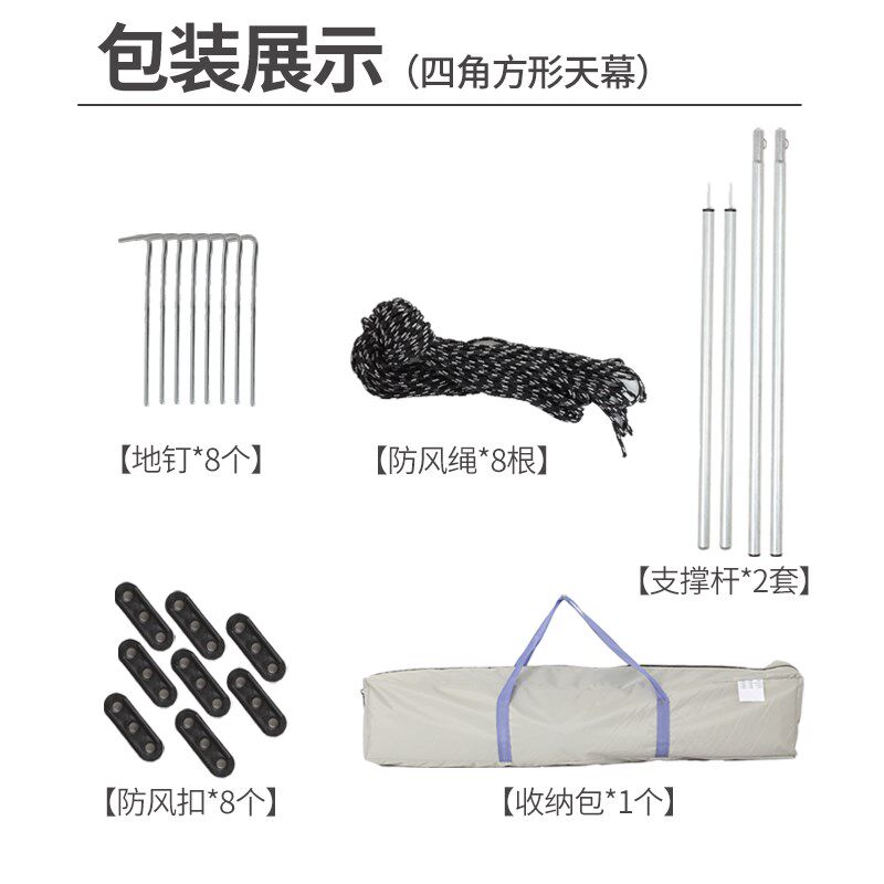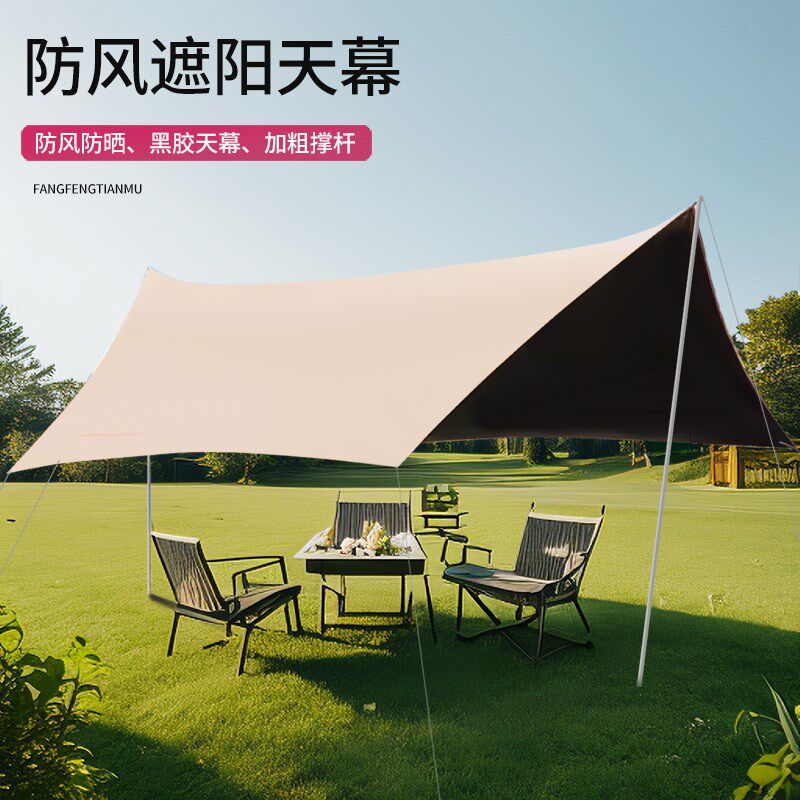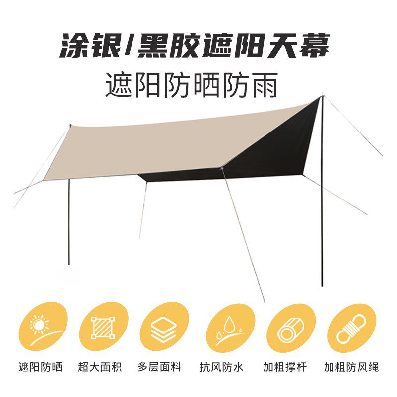户外黑胶天幕帐篷露营野餐沙滩遮阳防晒加厚涂银牛津布便携式凉棚