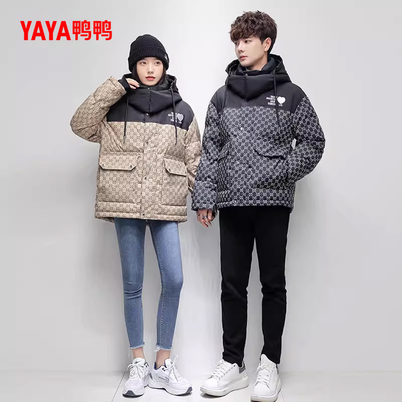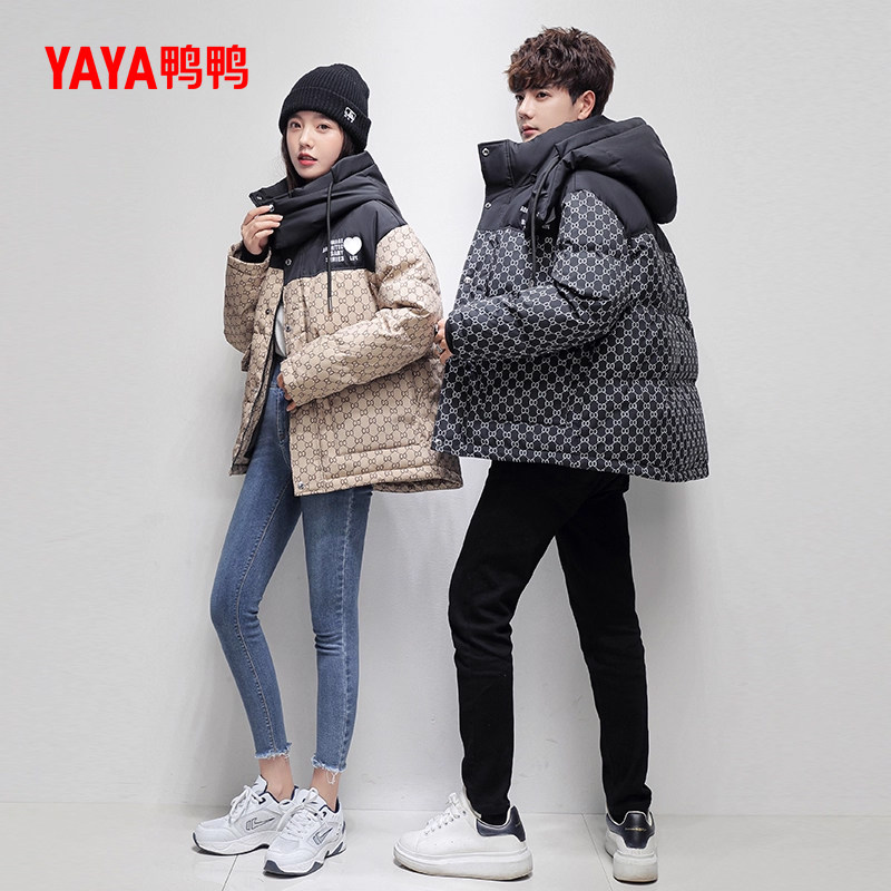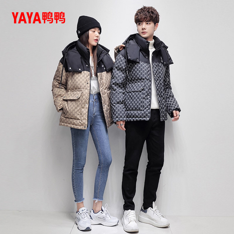 鸭鸭羽绒服女2025年新品时尚连帽拼接青年休闲时尚加厚保暖外套C