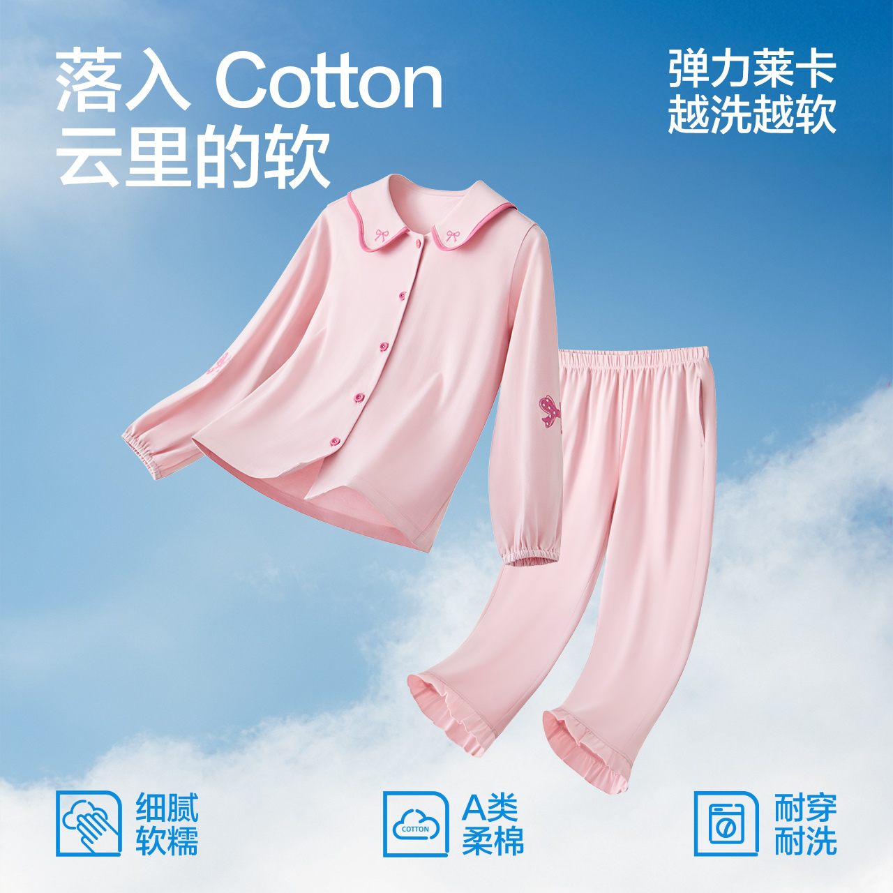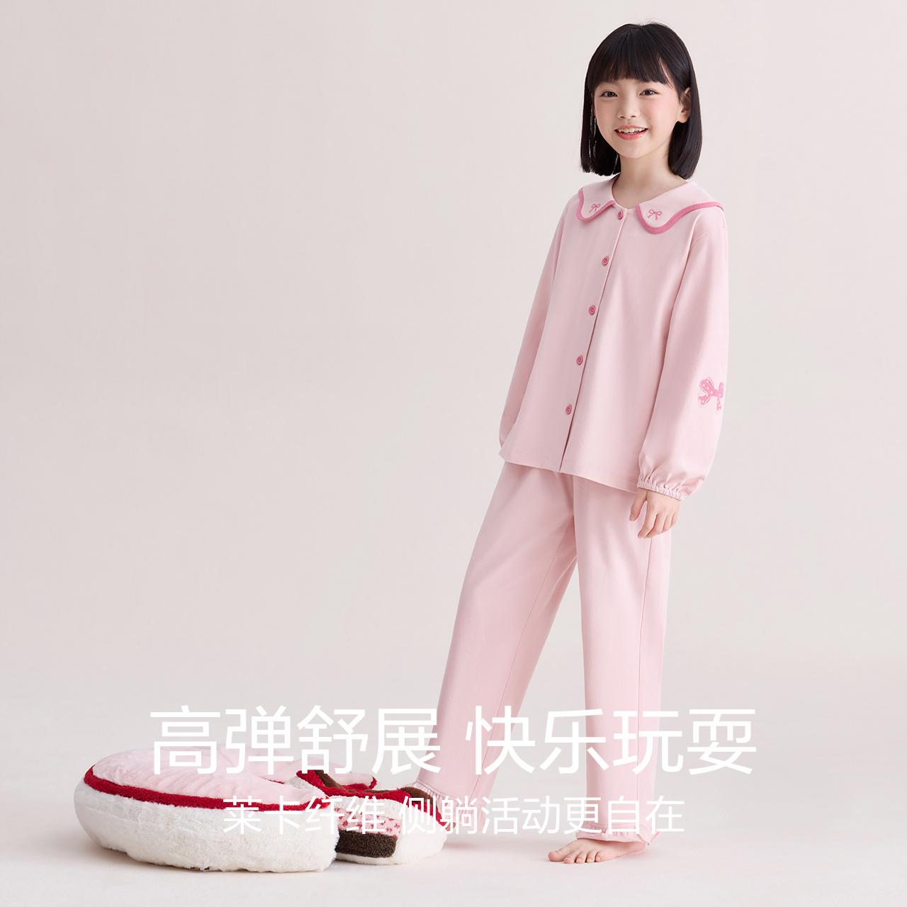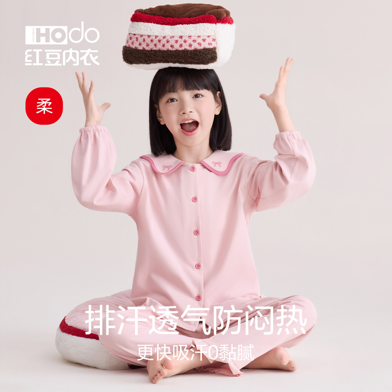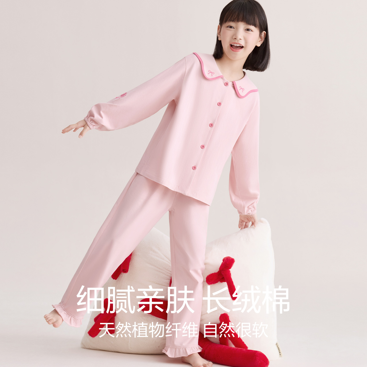 红豆儿童睡衣女童柔棉长袖可爱A类女孩宝宝中大童春秋家居服套装