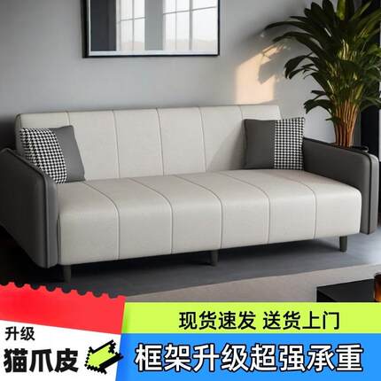2026小户型客厅皮艺沙发多功能折叠沙发床出租屋公寓双人沙发