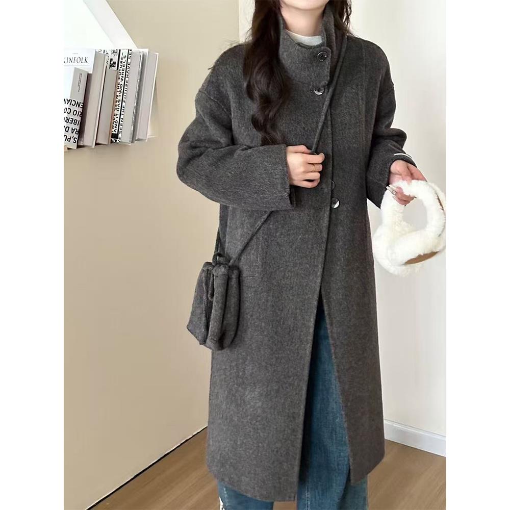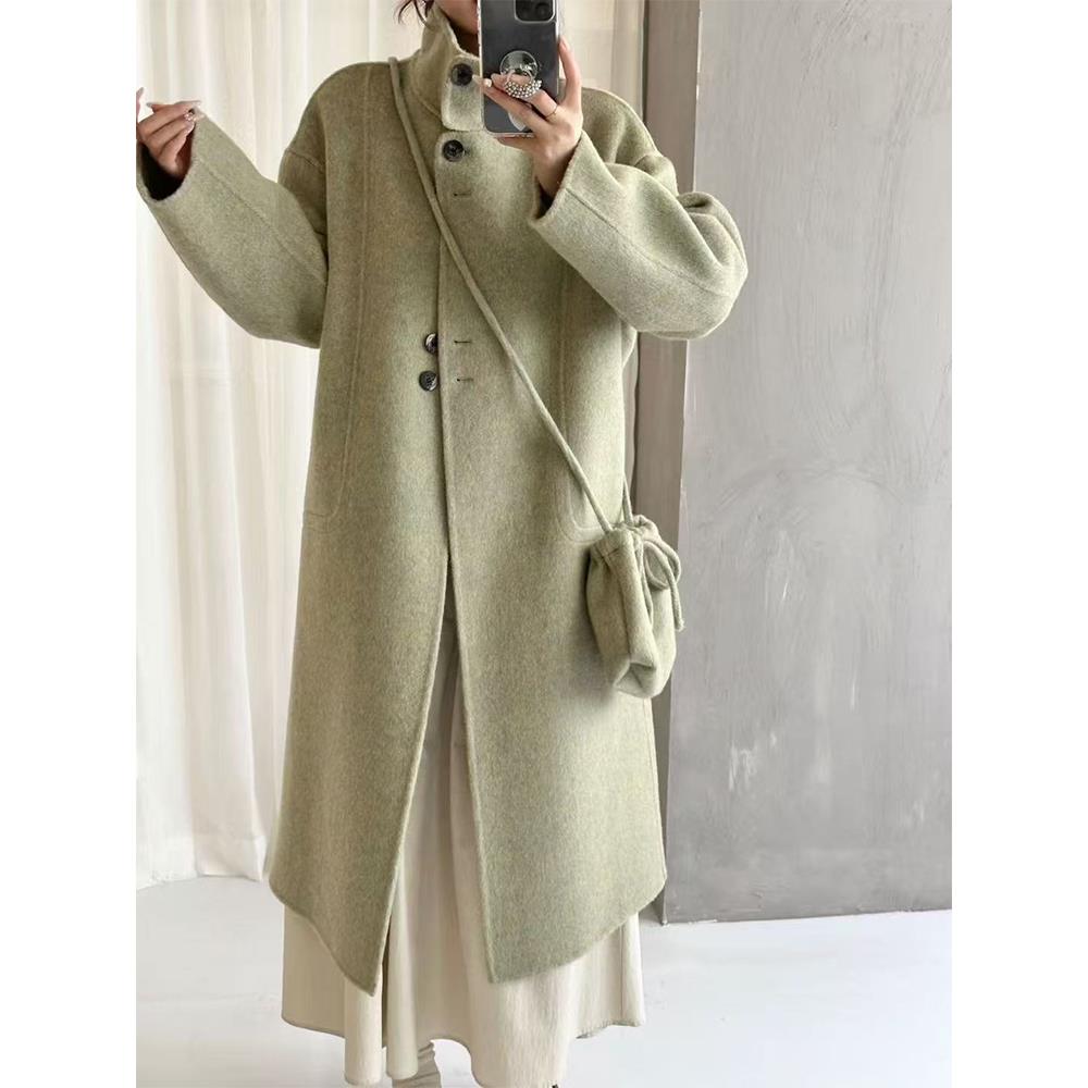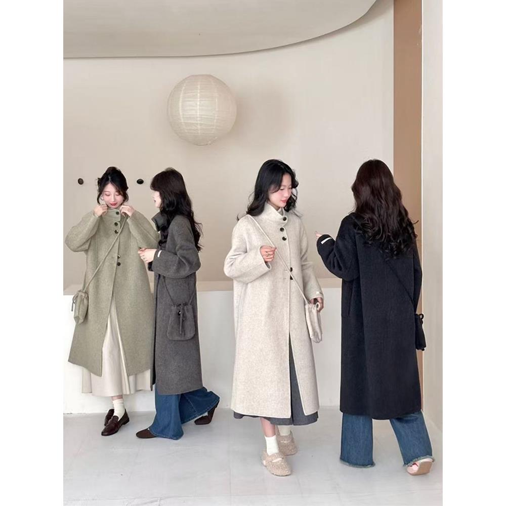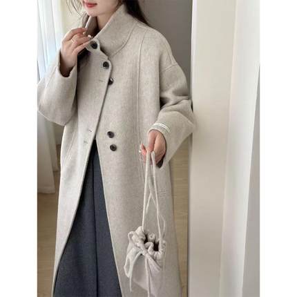 新款送包包立领双面羊绒大衣女韩系中长款羊毛呢外套2025秋冬宽松