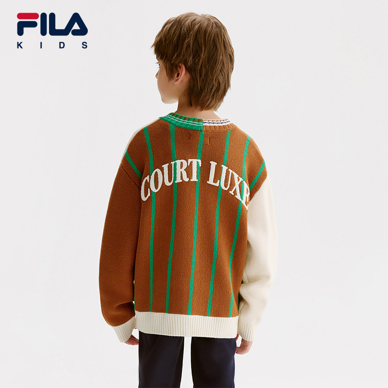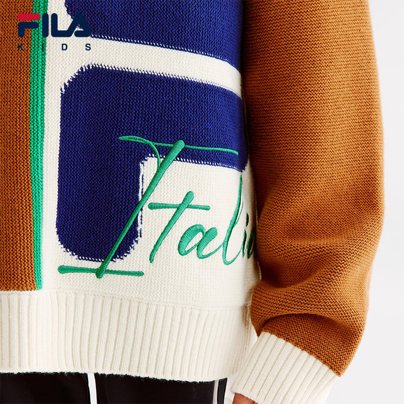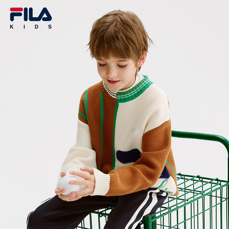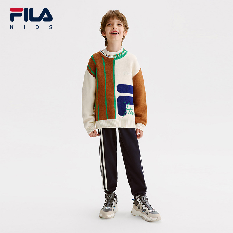 FILA斐乐童装儿童毛衫冬季新款保暖毛衣男童中大童时尚撞色上衣潮