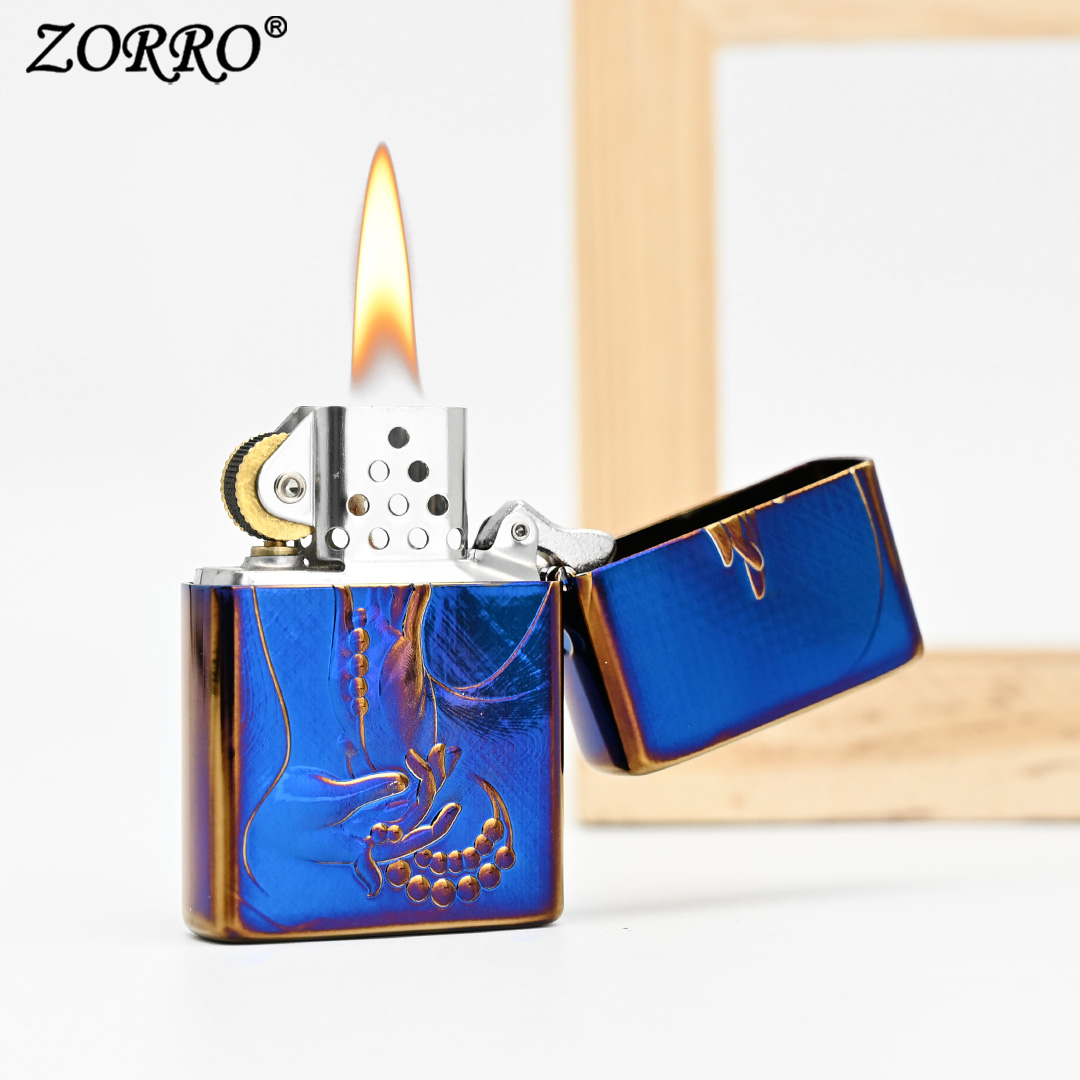 ZORRO佐罗煤油防风打火机905熏蓝文殊菩萨精雕送男士创意礼物