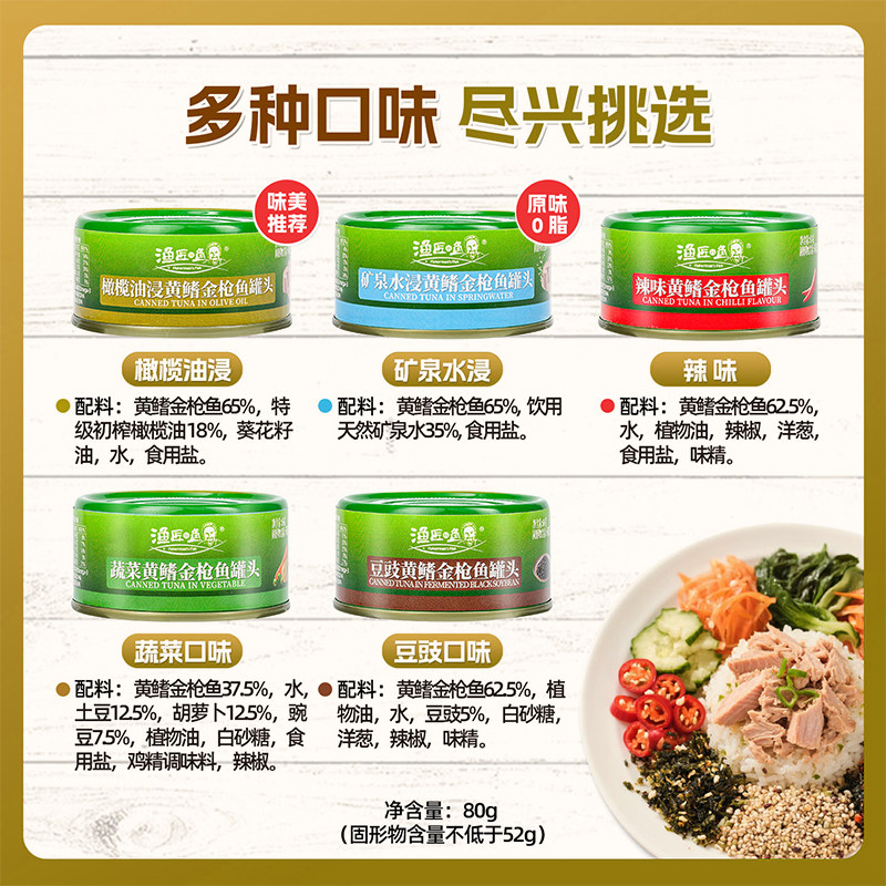 【日期新鲜】渔匠的鱼金枪鱼罐头80g初榨橄榄油水浸吞拿鱼熟食