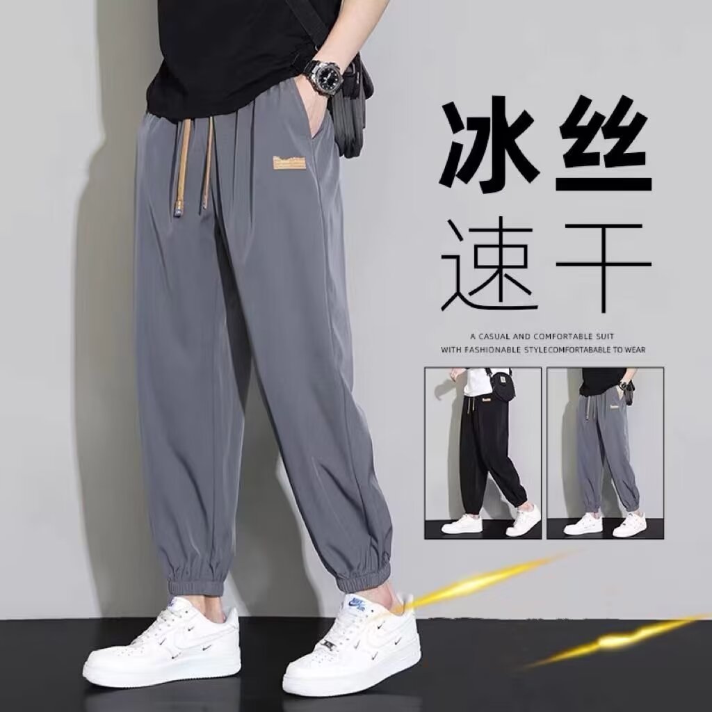 冰丝裤子男士休闲西裤2024夏季薄款夏天宽松直筒垂感速干运动长裤