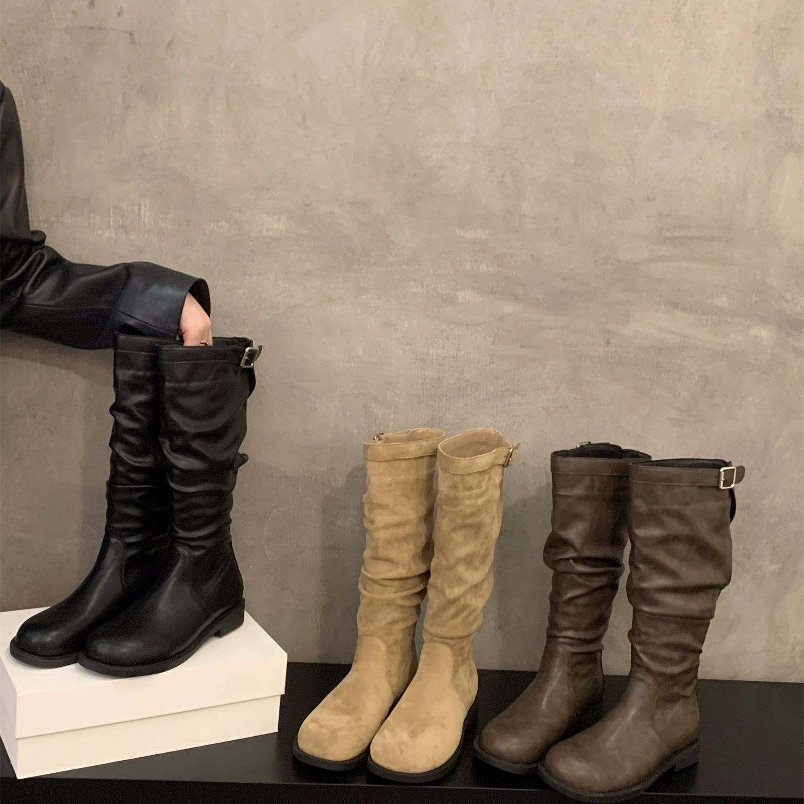 粗跟卡其色堆堆靴长筒长靴女鞋2025新款春秋冬季瘦瘦中筒骑士靴子
