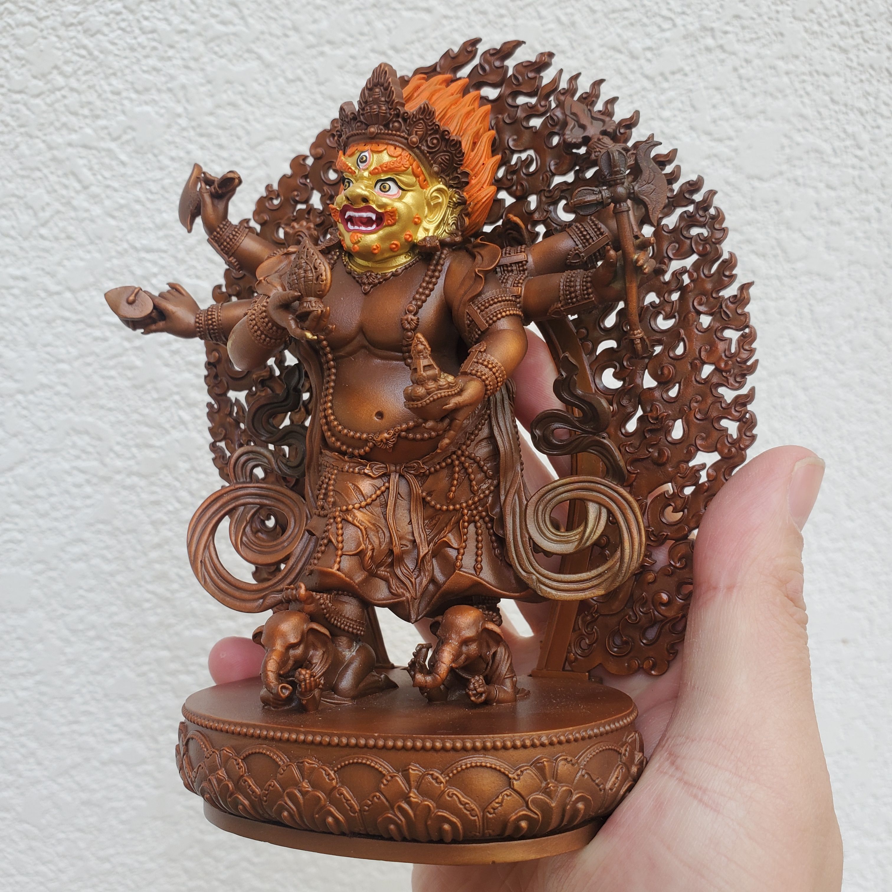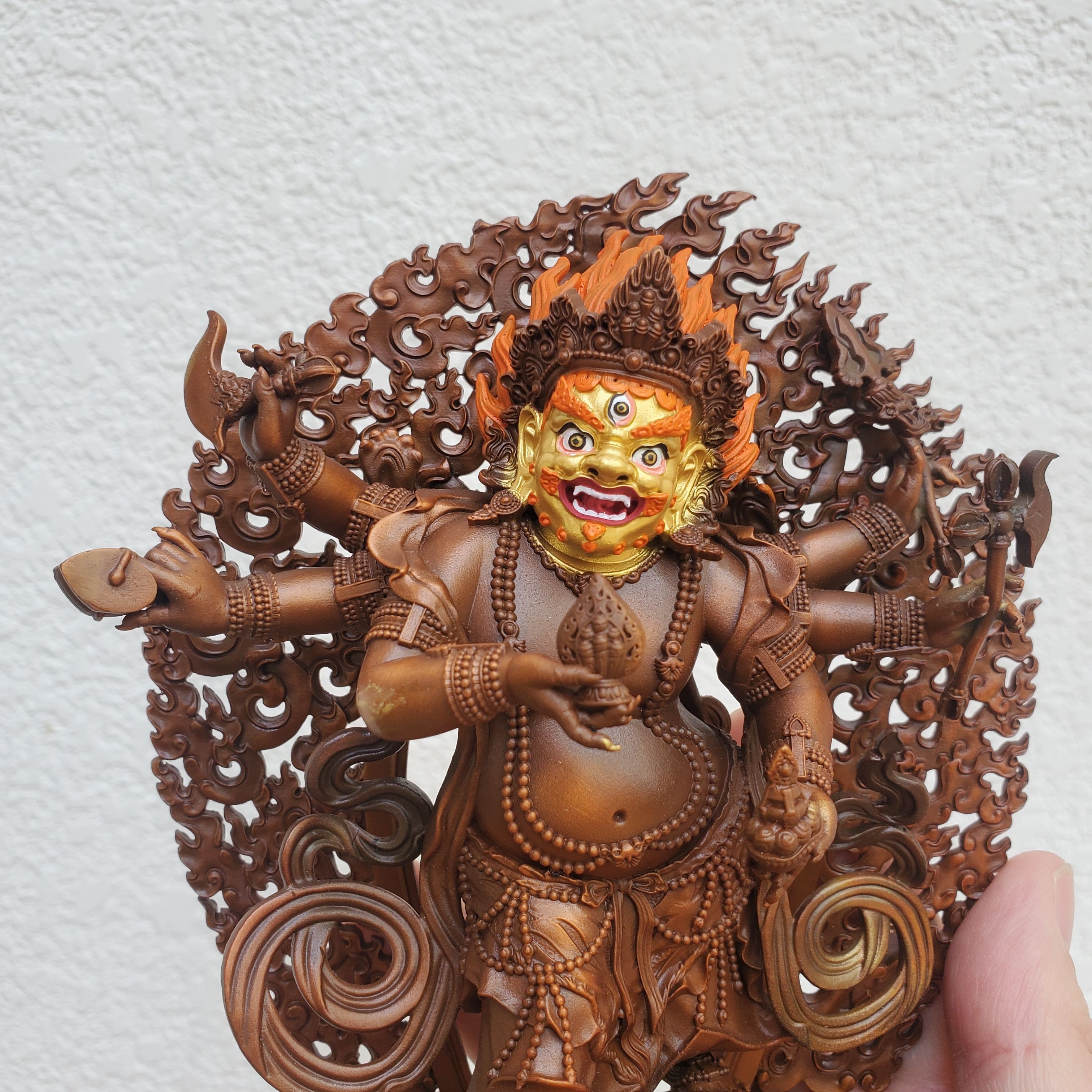 尼泊尔工艺纯铜六臂白枯主马哈嘎啦大黑天财神佛像家居供奉摆件