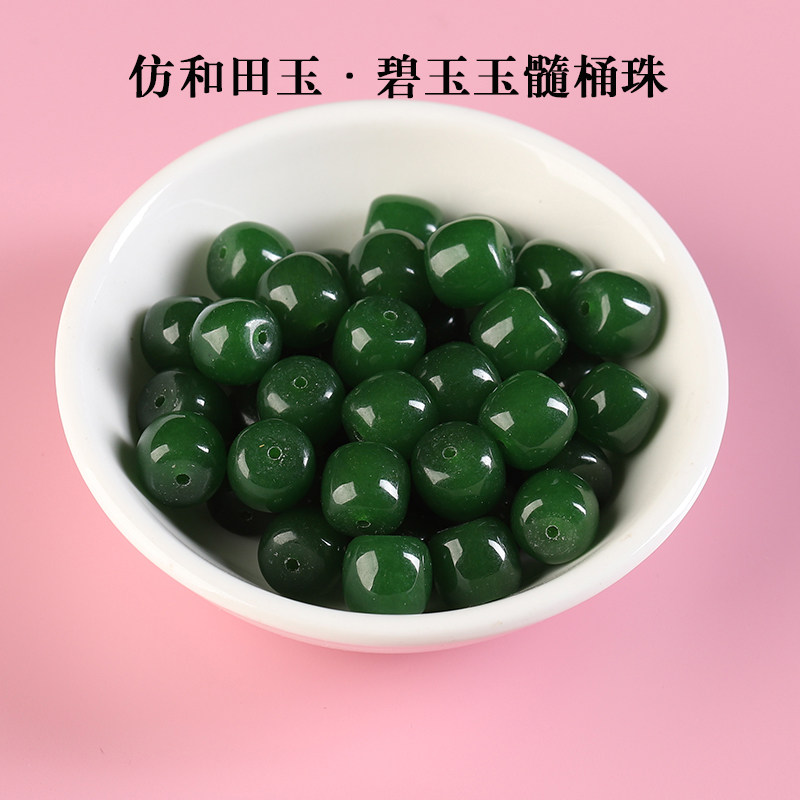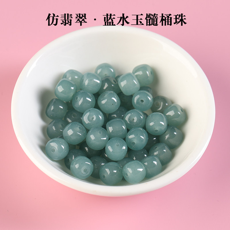 7A和田玉晴水玉髓桶珠散珠手串男女士diy手工手链项链碧玉蓝水