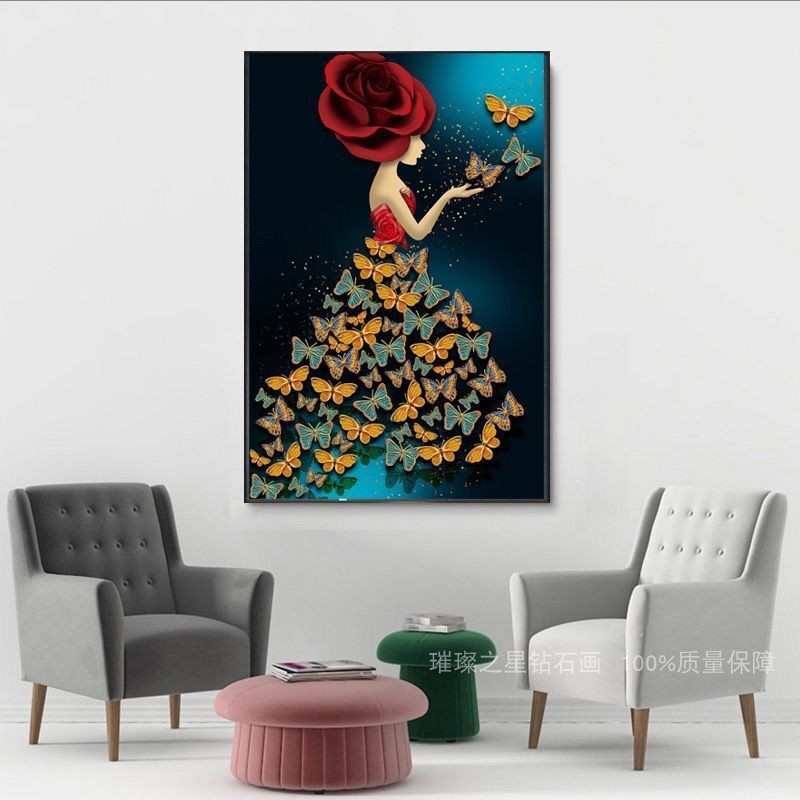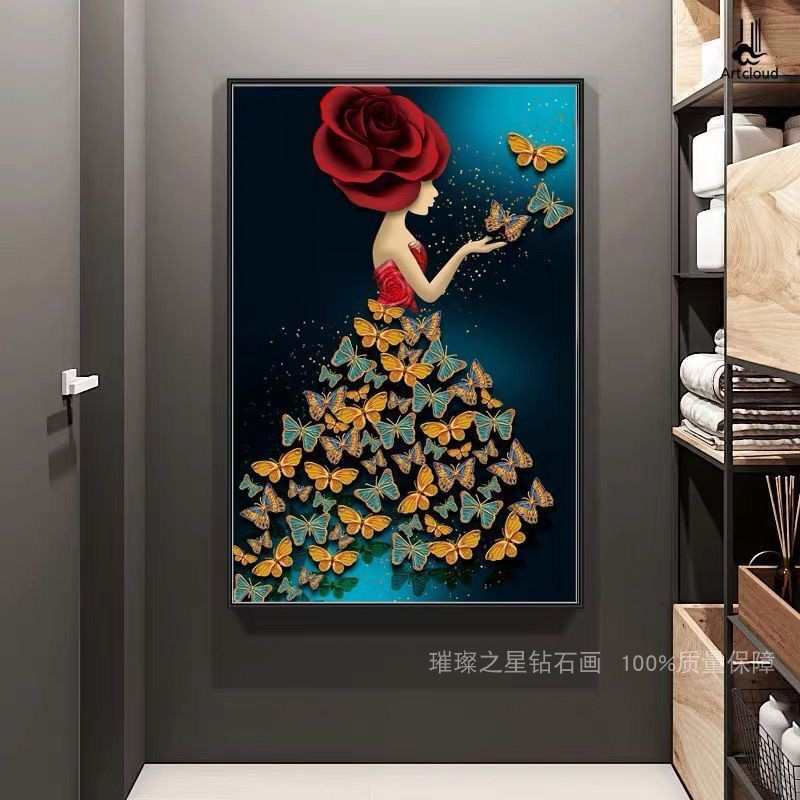 钻石画卡通满钻2024新s款蝴蝶少女5d点贴钻十字绣客厅玄关简约现