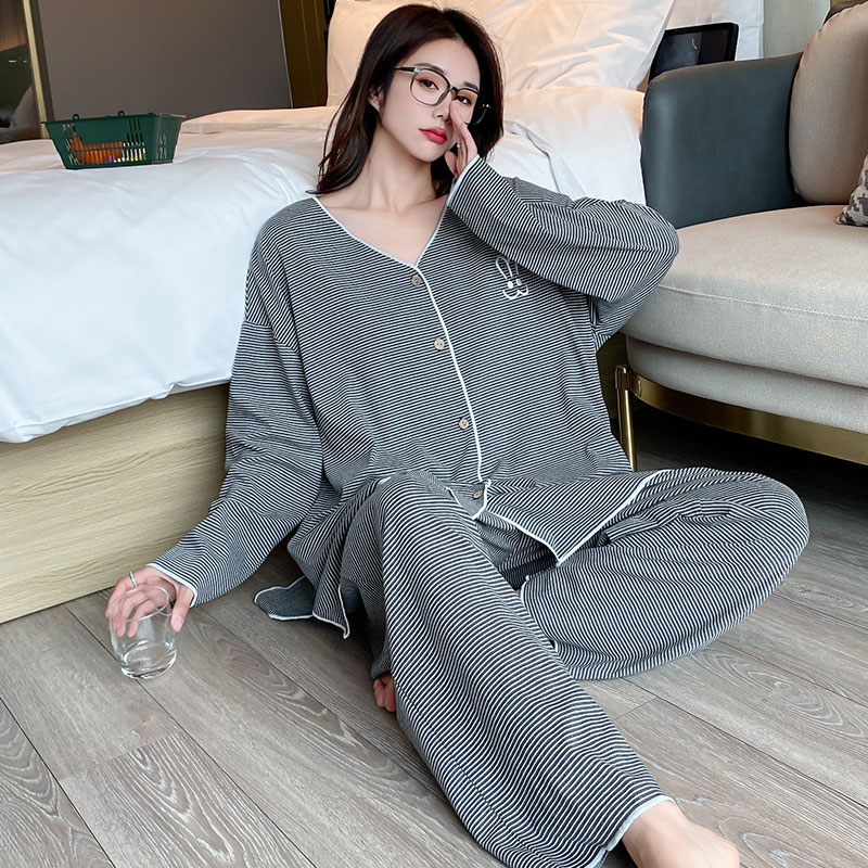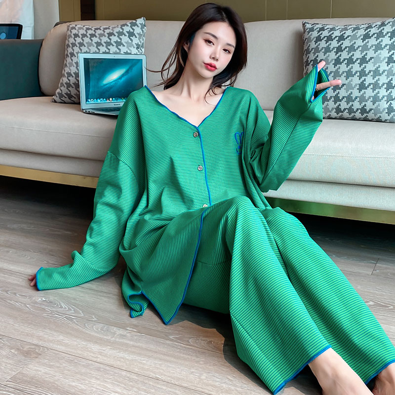 大码睡衣套装女200斤胖mm秋季纯棉长袖长裤两件套家居服加肥加大