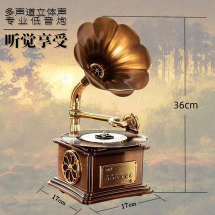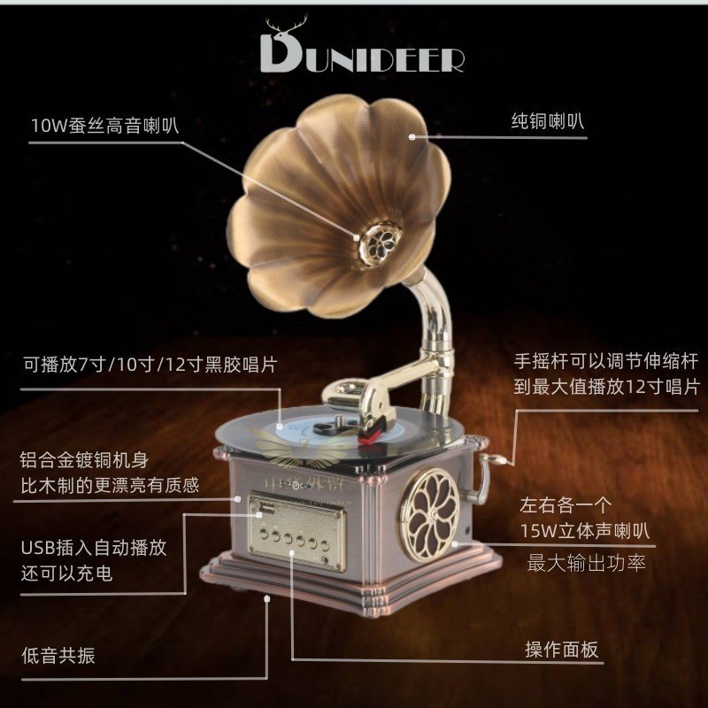 LP黑胶唱片机低音炮专业蓝牙音响迷你复古留声机音箱高音质电唱机