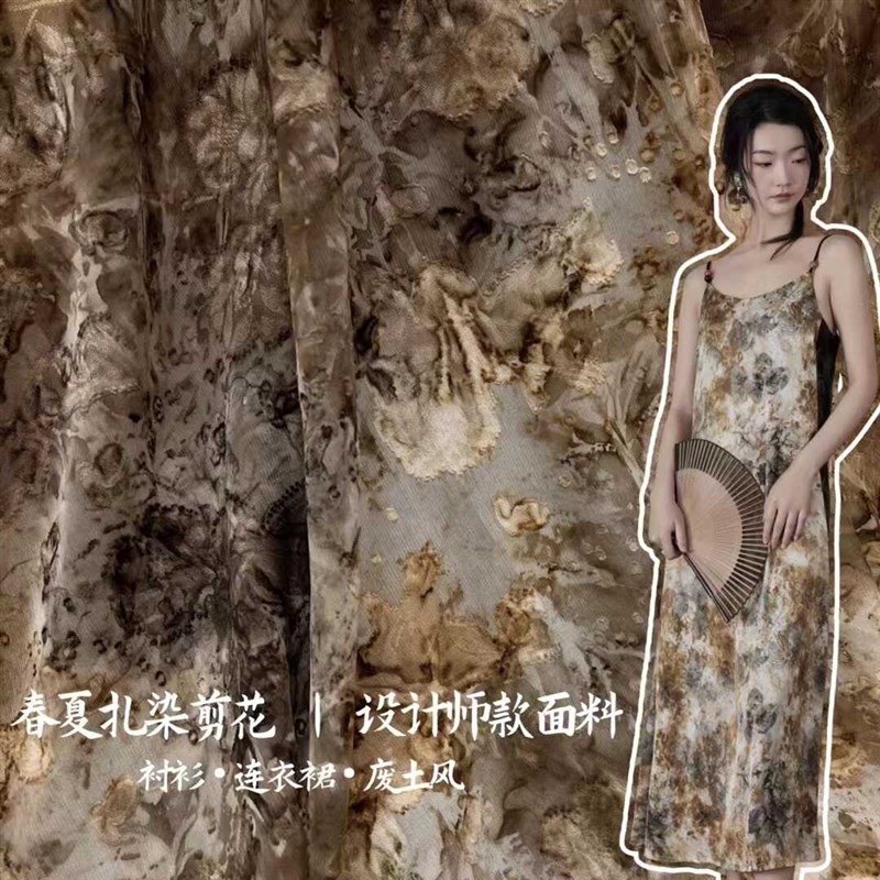 醋酸棉春夏扎染剪花 设计师款面料衬衫连衣裙废土风
