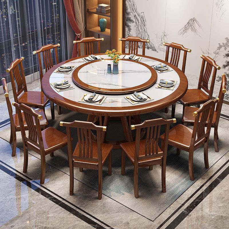 新中式实木餐桌椅组合大理石家用圆形带转盘饭桌岩板2米大圆桌子
