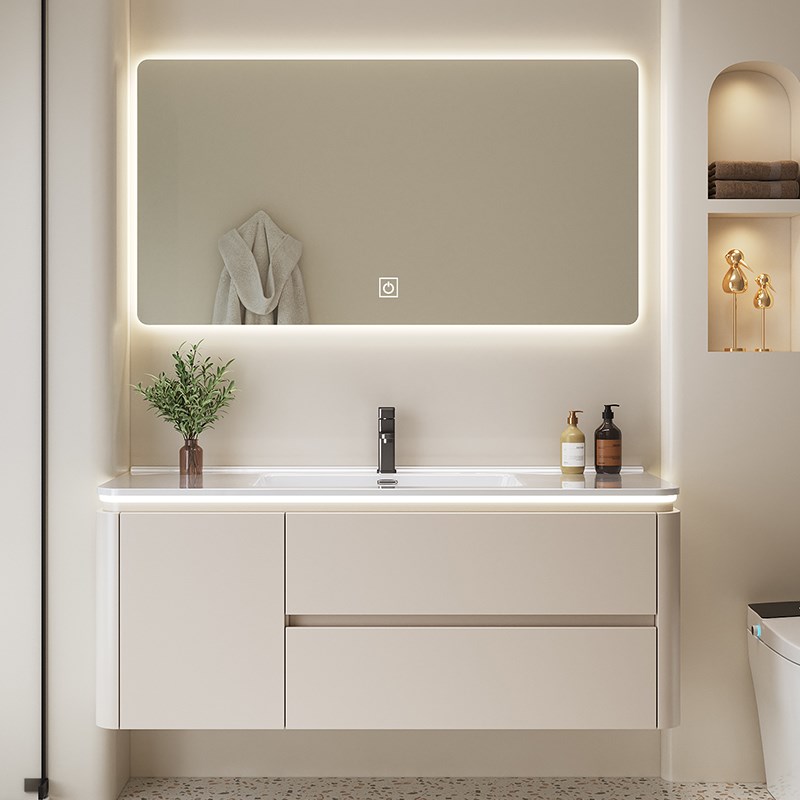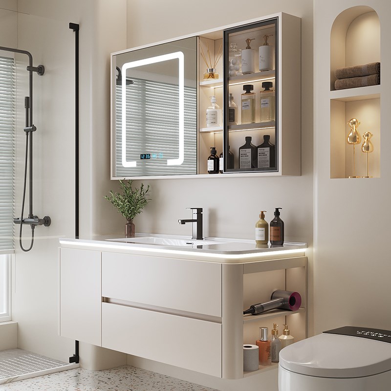 奶油风浴室柜组合陶瓷一体盆卫生间洗漱台洗手池洗脸盆卫浴套装