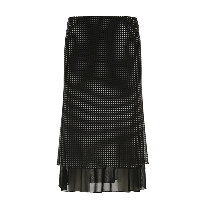 FabGirls 复古miu系波点印花网纱拼接半身裙 小众百搭显瘦中长裙