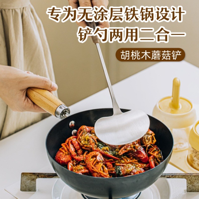 【下单立减50】304不锈钢胡桃木铲炒煎铲家用厨房炒菜煎肉迷你铲Z