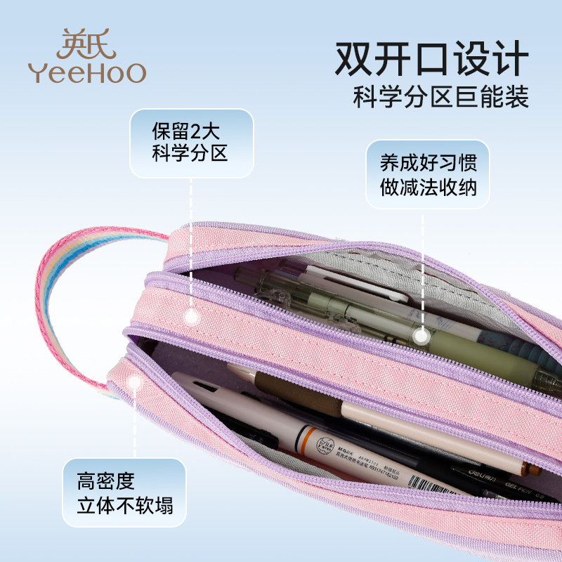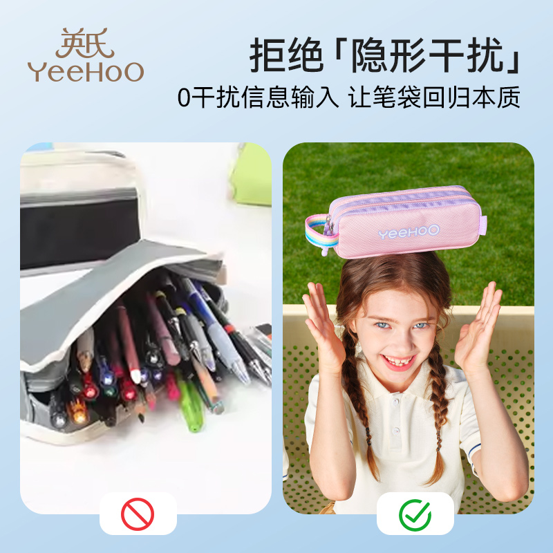 英氏儿童笔袋小学生多层耐磨防水笔袋多功能印花时尚大容量文具包
