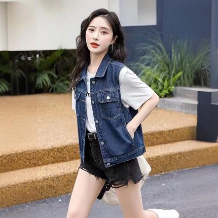 春秋牛仔马夹女士大码短款坎肩背心外套2025新款宽松无袖百搭马甲