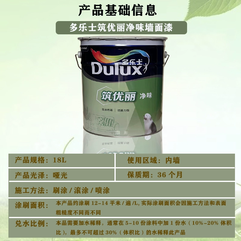 多乐士筑优丽净味乳胶漆家用墙面漆环保水性内墙防霉水性白色涂料