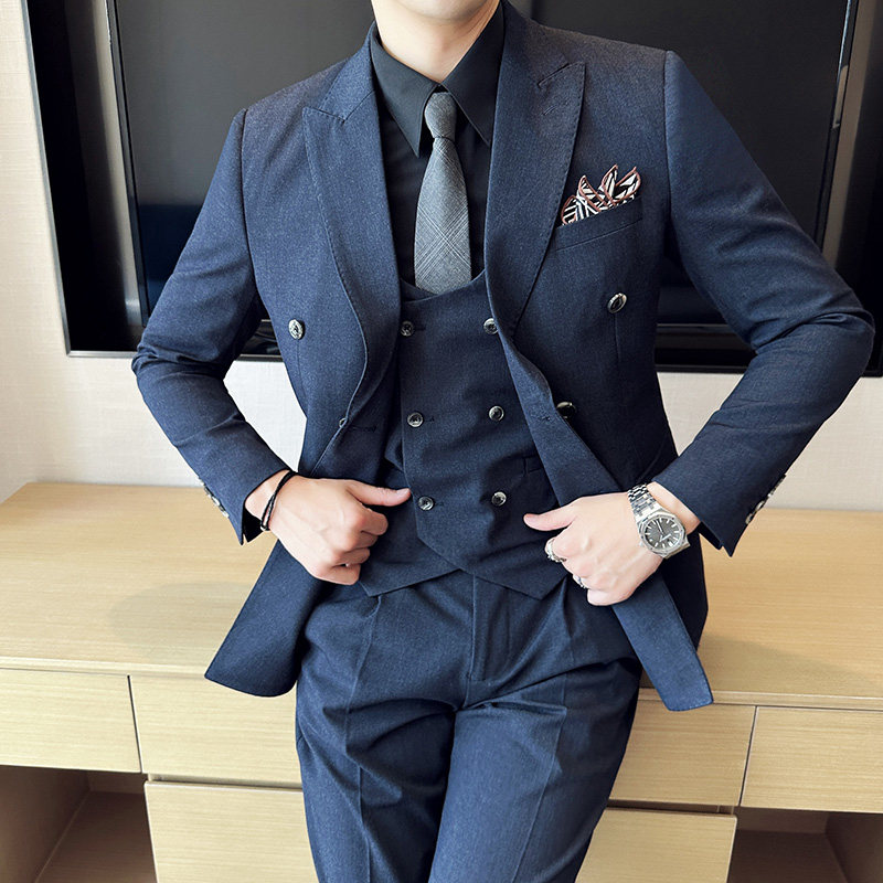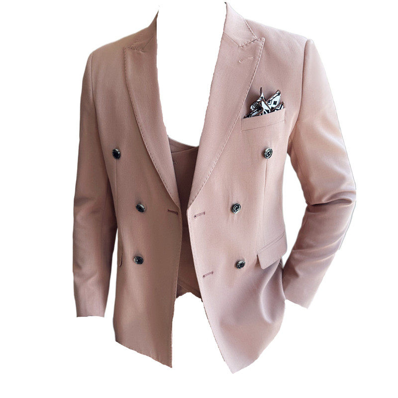 双排扣西服男套装时尚粉红色主持人结婚宴会礼服潮流痞帅修身西装