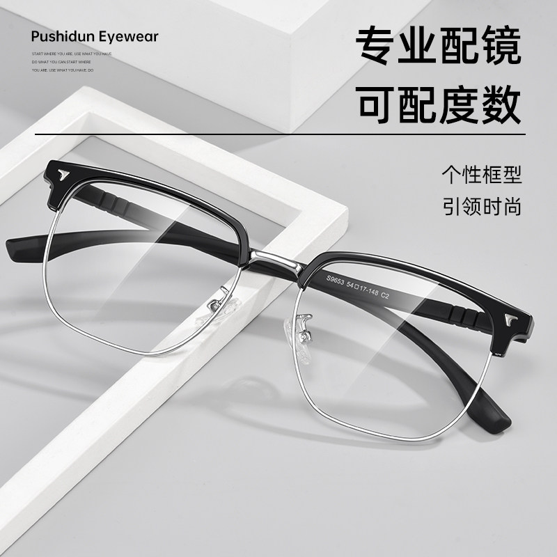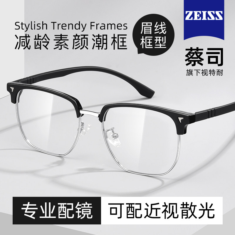 蔡司半框近视眼镜男款可配度数镜片眼镜框男款防蓝光丹阳眼镜工厂