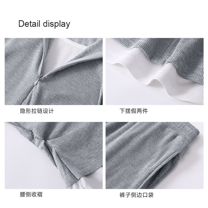 NOB真维斯灰色假两件套装女2026春季新款韩系休闲运动穿搭一整套