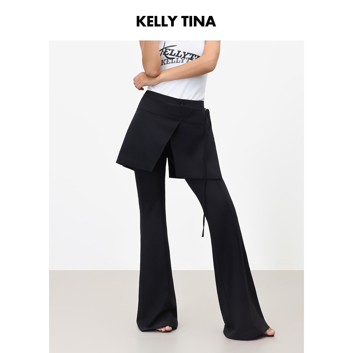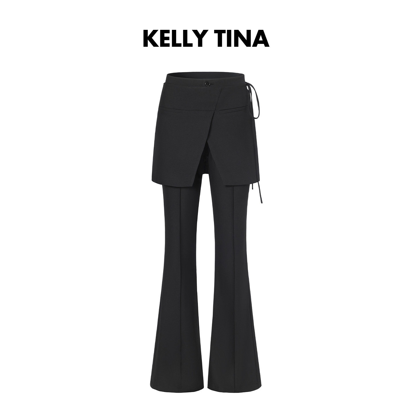 明星同款 腰封黑色微喇裤长裤女修气质显瘦假两件百搭休闲西装裤