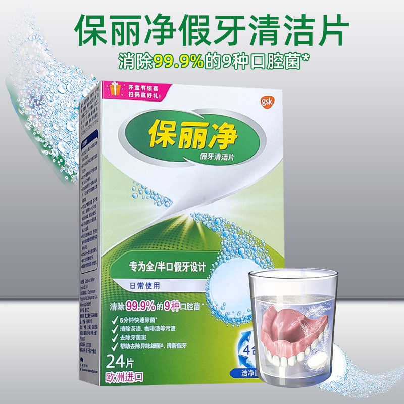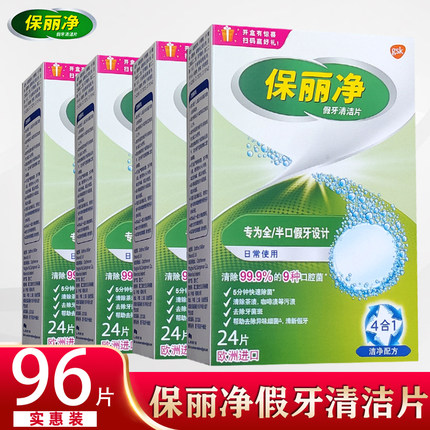 保丽净假牙清洁片24片x4盒义齿消毒泡腾片正畸牙套假牙洗白减口臭